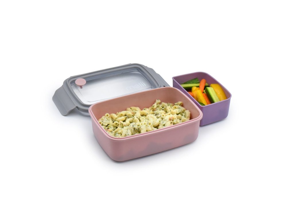 Svačinové bento boxy kanadské značky Melii se dvěma odděleními prostory jsou barevné a navíc tak praktické! Krabička má velký oddíl o objemu 880 ml a druhou menší odnímatelnou přihrádku o objemu 280 ml. Bento box můžete používat s nebo bez odnímatelného oddílu.