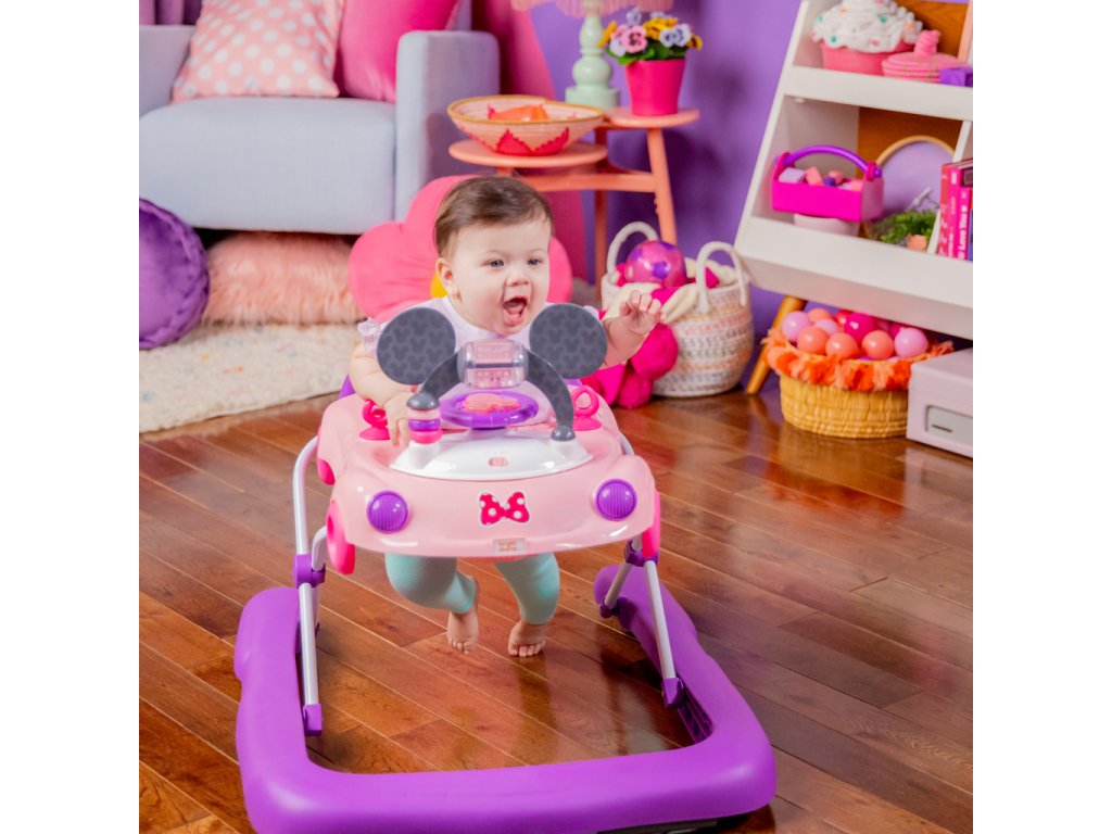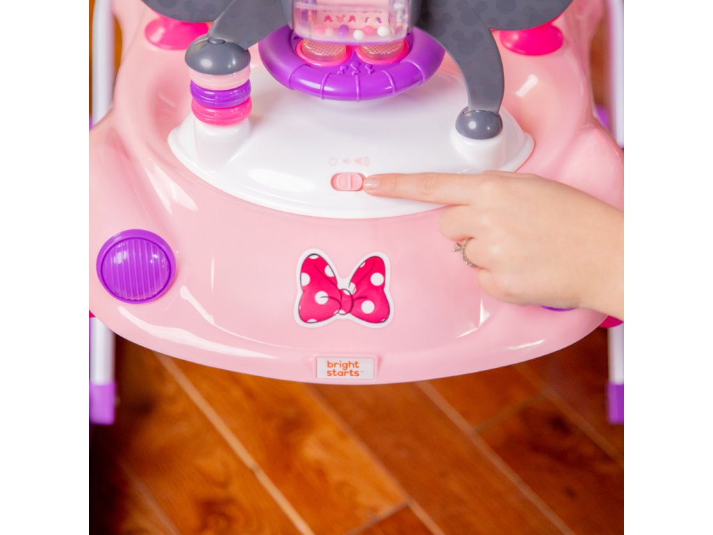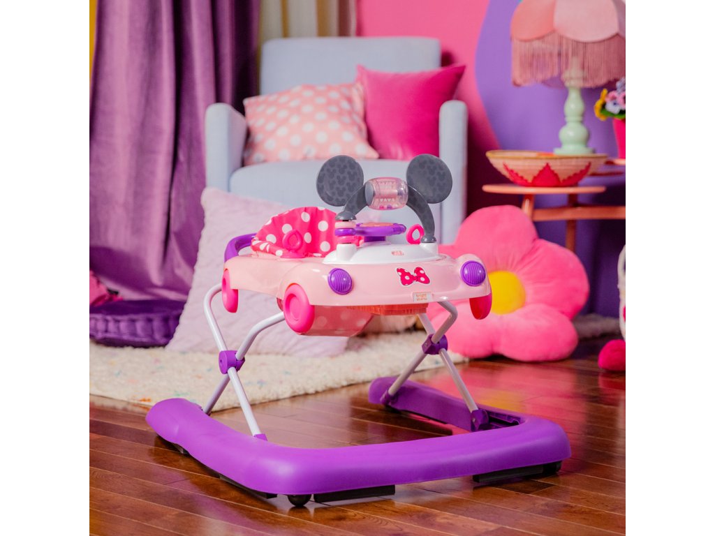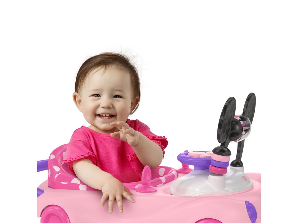 Chodítko poháňané technológiou Bright Starts ponúka 3 režimy rastu s bábätkom: chodítko v sede, chodítko a prenosnú stanicu s elektronickými hračkami. Vydajte sa na jazdu s dieťaťom vo veku od 6 mesiacov do 2 rokov alebo viac — chodítko rastie s dieťatkom od skorého objavovania a prvé krôčiky až po expertnú úroveň „vodiča“. Doplnené o detaily myšky Minnie: ikonické uši na volante, ružové bodky, charakteristický znak Minnie a hračky s motívom Minnie so svetlami a zvukmi.