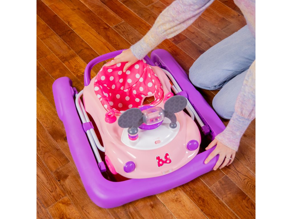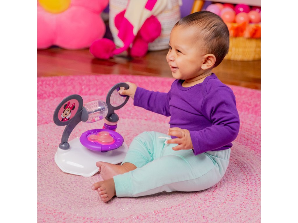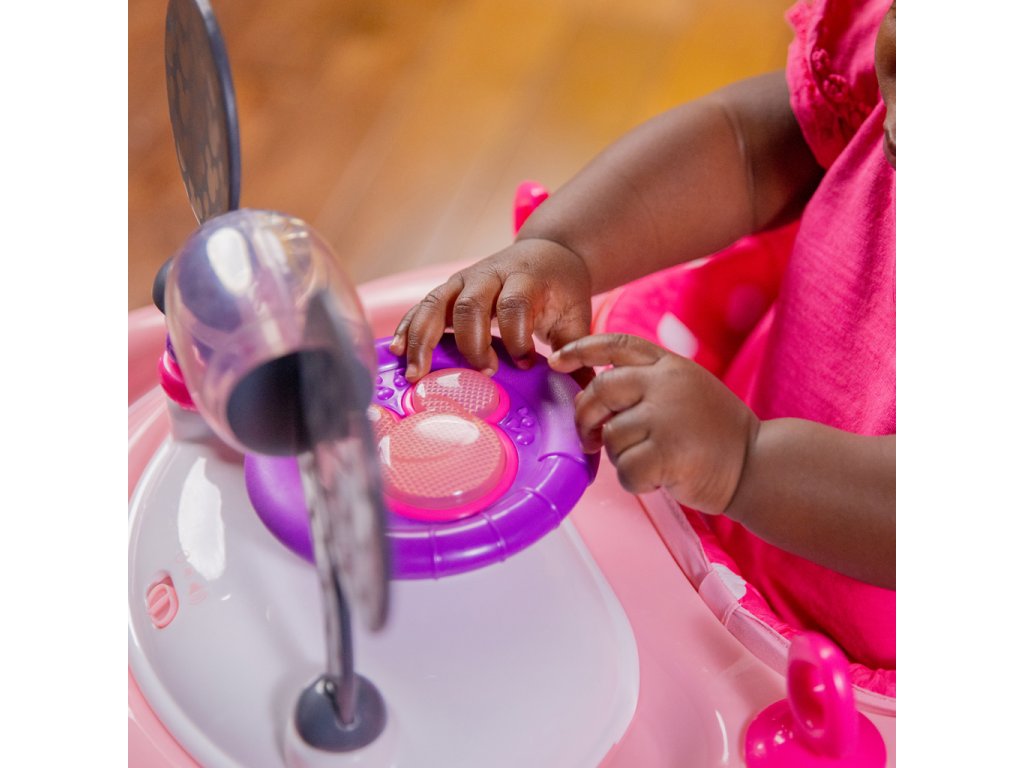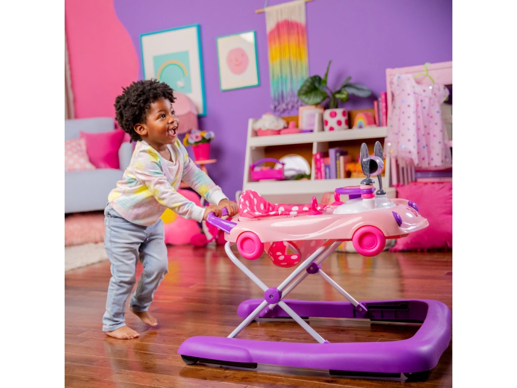 Chodítko poháňané technológiou Bright Starts ponúka 3 režimy rastu s bábätkom: chodítko v sede, chodítko a prenosnú stanicu s elektronickými hračkami. Vydajte sa na jazdu s dieťaťom vo veku od 6 mesiacov do 2 rokov alebo viac — chodítko rastie s dieťatkom od skorého objavovania a prvé krôčiky až po expertnú úroveň „vodiča“. Doplnené o detaily myšky Minnie: ikonické uši na volante, ružové bodky, charakteristický znak Minnie a hračky s motívom Minnie so svetlami a zvukmi.