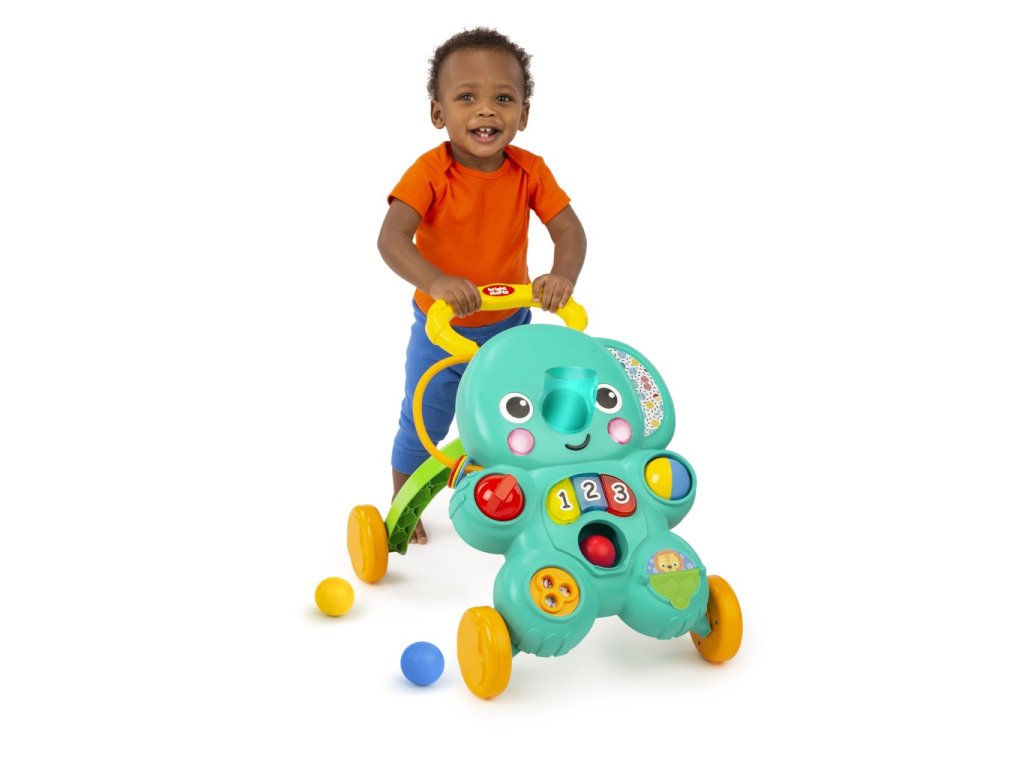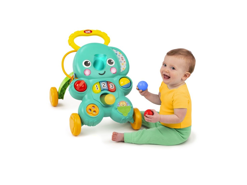 - dizajn Stroll 'n Roll 2 v 1 od Bright Starts kombinuje hravosť hračky na sedenie a hranie s dobrodružstvom chodítka na tlačenie