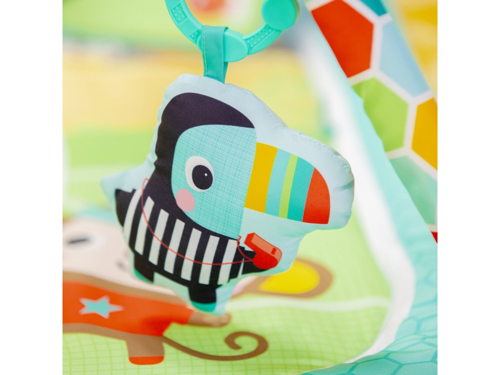 Obsahuje 4 ďalšie hračky: kartičky s číslami a zvieratkami, plyšového tukana so zvonkohrou, hračku s textúrovanými listami a klasický ľahko uchopiteľný Oball. Podporte motoriku dieťatka a povzbuďte jeho prvé ciele! Hračky sú navrhnuté tak, aby ste si ich mohli vziať so sebou na cesty.