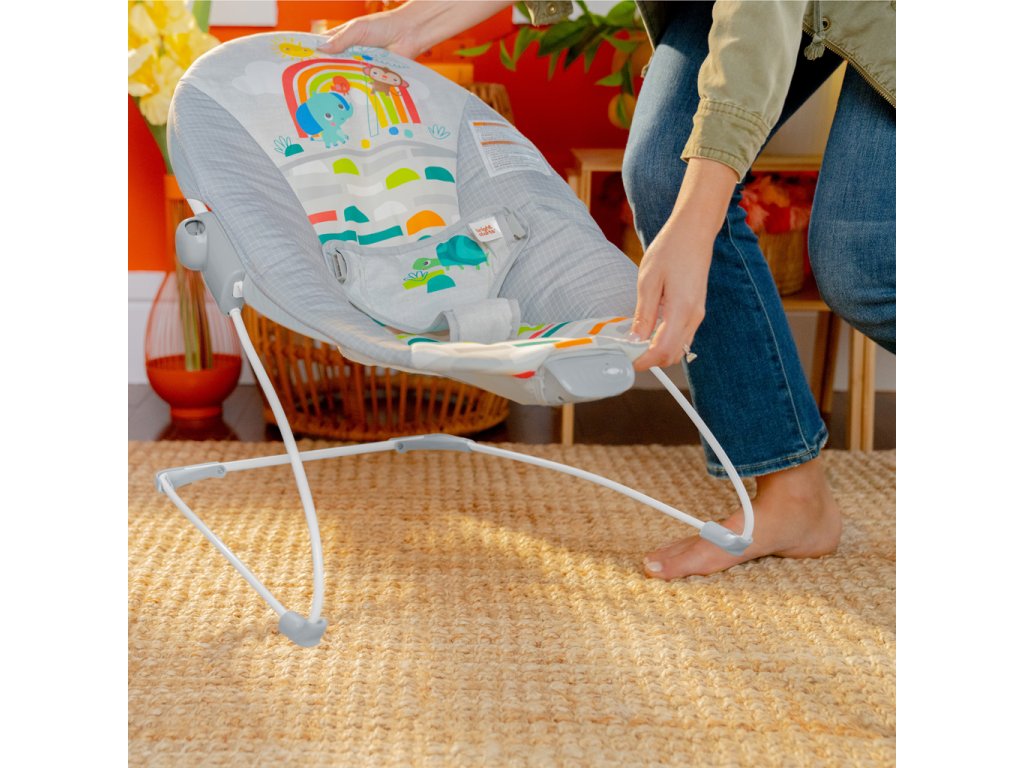 Pomôžte udržať dieťatko spokojné s vibráciami pohupujúceho lehátka. Hrazdičku s hračkami môžete jednoducho odstrániť jednou rukou, keď sa hra skončí.