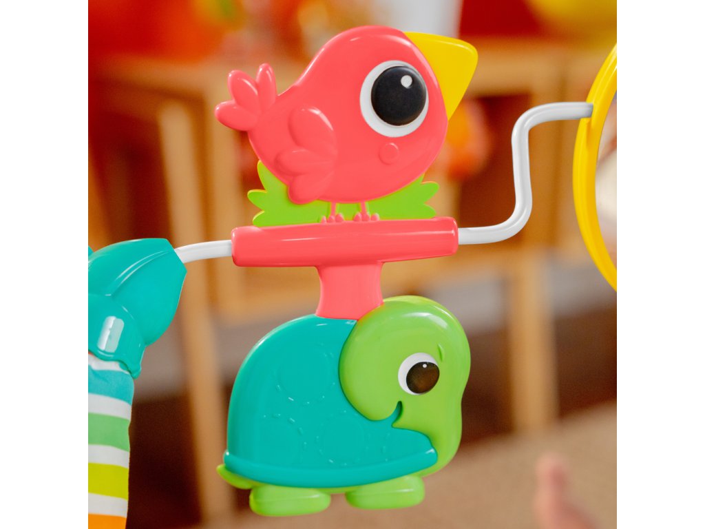 Premeňte izbičku na raj s Vibračným detským lehátkom Playful Paradise od Bright Starts. Toto pohupujúce lehátko pomáha vášmu zvedavému dieťatku hrať sa a precvičovať motorické zručnosti. Nemotorná opička a priatelia vykúzlia Vášmu dieťatku úsmev na perách. Môže sa natiahnuť k netopierovi a roztočiť hračky visiace zhora. Na druhej strane opičky je zrkadielko bezpečné pre detičky slúžiace na predstavenie vlastného odrazu.