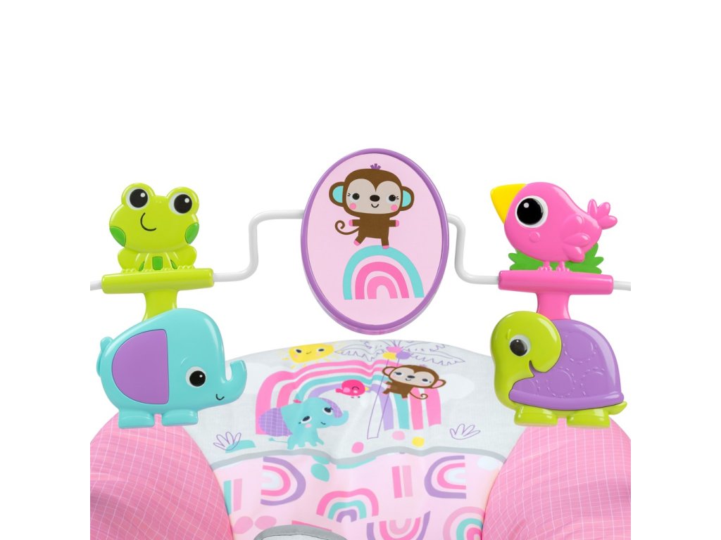 Toto hopsadlo pomáha vášmu zvedavému dieťatku hrať sa a precvičovať motorické zručnosti. Bláznivá opička a jej kamaráti vyčarujú sladké úsmevy, keď sa dieťatko natiahne, aby odpaľovalo a otáčalo tropické hračky zavesené zhora. Kuk... na druhej strane točiacej sa opičky je zrkadlo, ktoré je bezpečné pre bábätká. Zoznámte bábätko s jeho vlastným odrazom pomocou tejto hračky, ktorá ho prekvapí a poteší.
