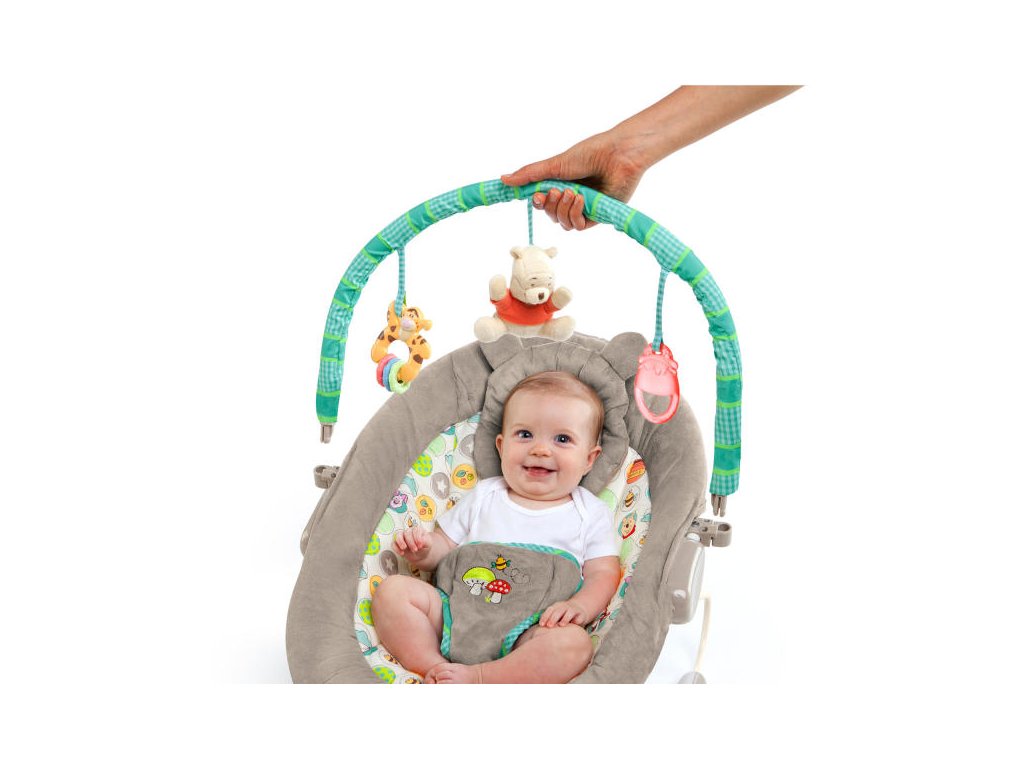 Vďaka mäkkým, luxusným tkaninám bude vaše dieťa milovať trávenie času v tomto premyslene navrhnutom lehátku. Lehátko Disney Baby od Bright Starts Winnie the Pooh Dots & Hunny ™ je vybavené odnímateľnou opierkou hlavy pre extra podporu, vibráciami a sedmymi zábavnými melódiami. Hrazdička zabaví deti s hračkami ako hrnček s medom, plyšový Macko Pú a Tiger s krúžkami.