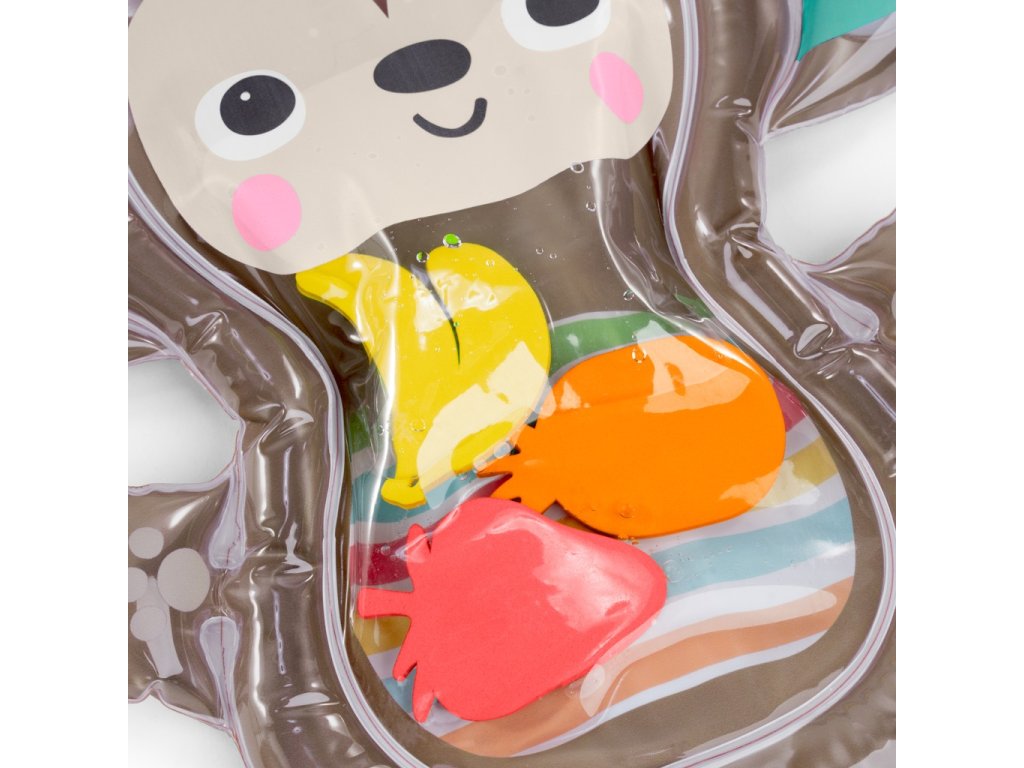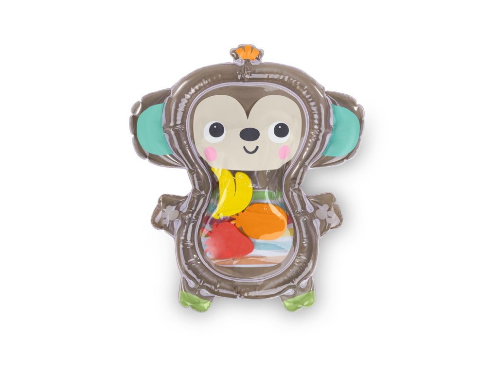 Nakŕmte hladnú opičku pomocou vodnej podložky Hungry Monkey od Bright Starts! Jednoducho naplňte stred hracej podložky vodou a vonkajší okraj nafúknite vzduchom, aby sa začala zmyslová hra. Vaše dieťatko bude rado „kŕmiť“ hladnú opicu pomocou plávajúcich kúskov ovocia. Hrubé bruško opice obsahuje 3 plávajúce kúsky ovocia: banán, ananás a jahodu. Počas hry v sede a na brušku môže dieťa pracovať na rozvoji svalov, zatiaľ čo kúsky ovocia sa pohybujú vo vnútri bruška opice – pomáha pochopiť príčinu a následok! Kompaktná veľkosť podložky je ideálna na cestovanie a slúži aj ako hračka k vysokej stoličke pre skoré hry v sede. Vodná zátka umožňuje rýchle a pohodlné plnenie a vypúšťanie podložky a čistenie je hračkou vďaka ľahko čistiteľnému PVC materiálu podložky. Stačí vypustiť vodu a vzduch, utrieť podložku a zložiť. Ideálne pre novorodencov a staršie deti.