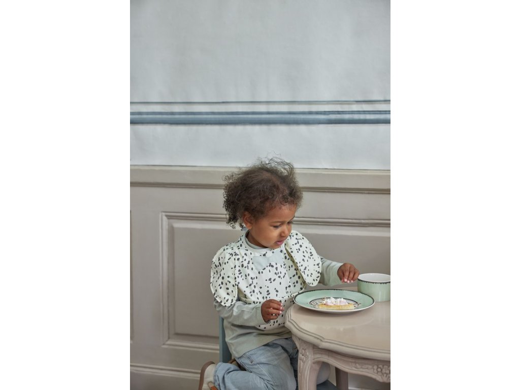 Praktický bryndák je z nové jarní kolekce. Potažen je pogumovanou vrstvičkou, aby byl snadno opláchnutelný, stíratelný a rychle čistý po každém použití. Přední kapsa zachytí drobky a kapky od pití. Bryndák se snadno nandavá a sundavá díky uzavírání na suchý zip. Vyrobeno bez použití PVC a ftalátů.