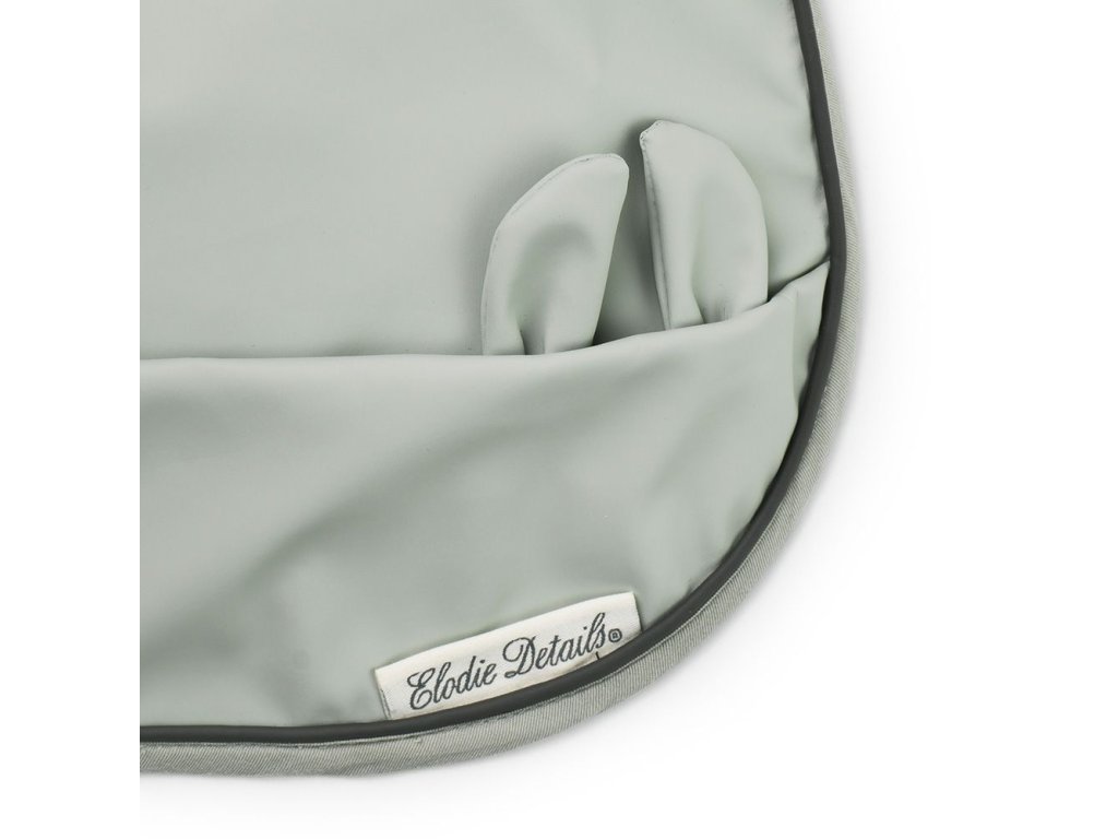 Praktický bryndák je potažen pogumovanou vrstvičkou ochraňující bryndák, aby byl snadno opláchnutelný, stíratelný a rychle čistý po každém použití. Přední kapsa zachytí drobky a kapky od pití. Bryndák se snadno nandavá a sundavá díky uzavírání na suchý zip. Vyrobeno bez použití PVC.