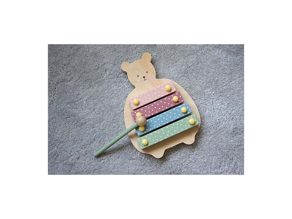 Xylofón je zábavný hudobný nástroj, ktorý vyhovuje aj tým najmenším deťom. Prebuďte v dieťati hudobný záujem. Xylofón má 4 zvukové dosky v rôznych farbách a sprievodnú paličku. Xylofón je vyrobený z dreva, ktoré produkuje jemnejší zvuk ako klasický kov. Xylofón má tiež roztomilý tvar medvedíka pre väčšiu radosť.