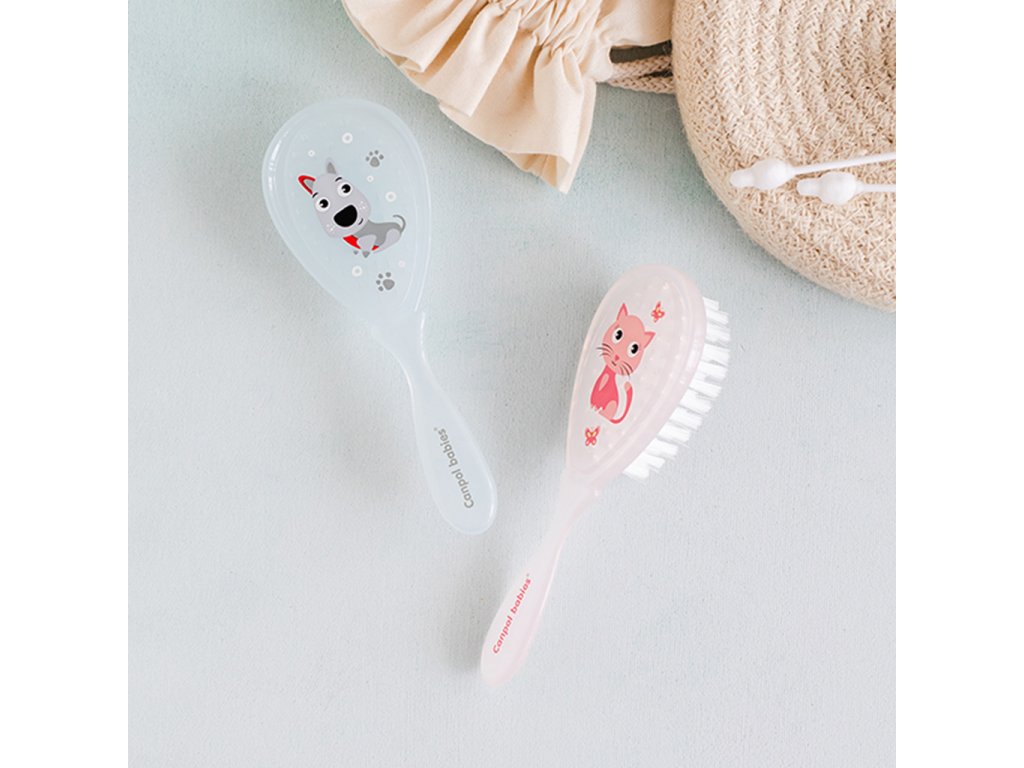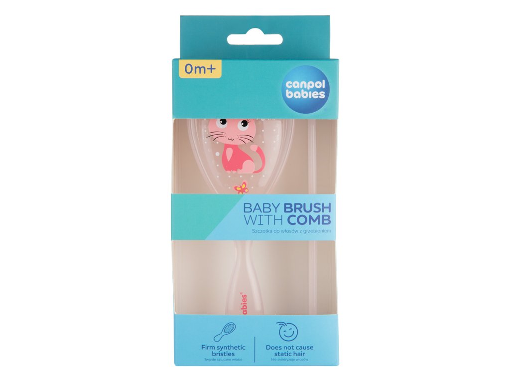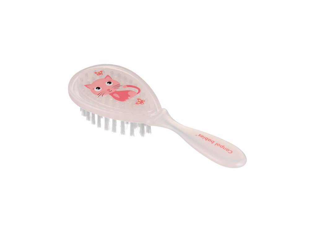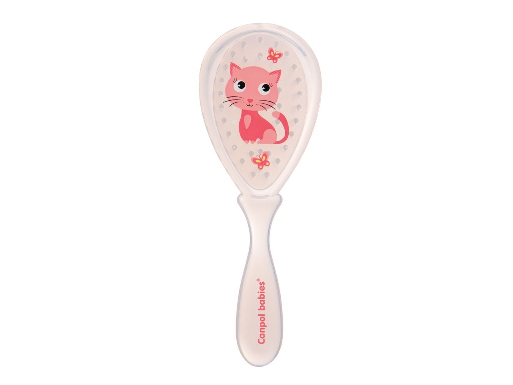 Bezpečný a jemný detský kefa na vlasy z umelých štetín. Kefa jemne masíruje hlavičku a neelektrizuje vlasy. Dieťa sa vďaka atraktívnemu tvaru a farbám rado češe samo.