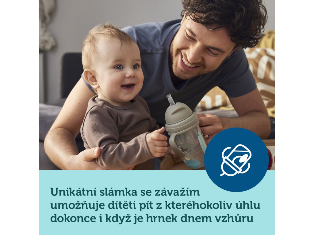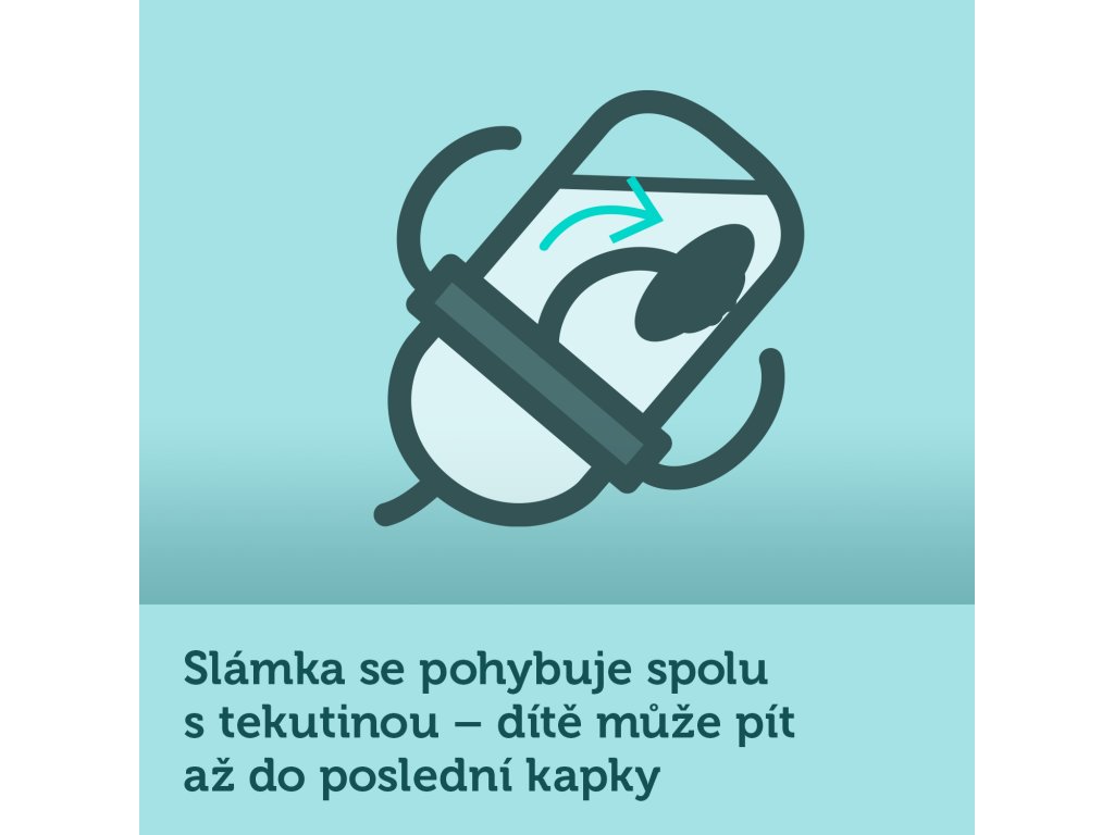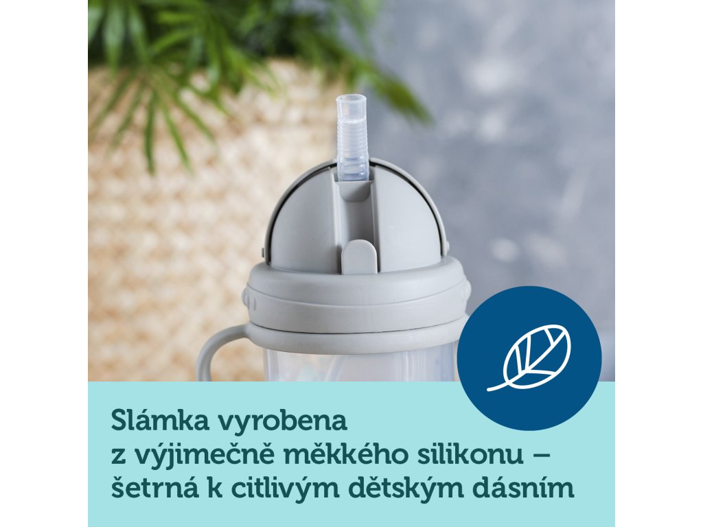 - Silikónová, výnimočne jemná slamka – šetrná k citlivým ďasnám bábätka.