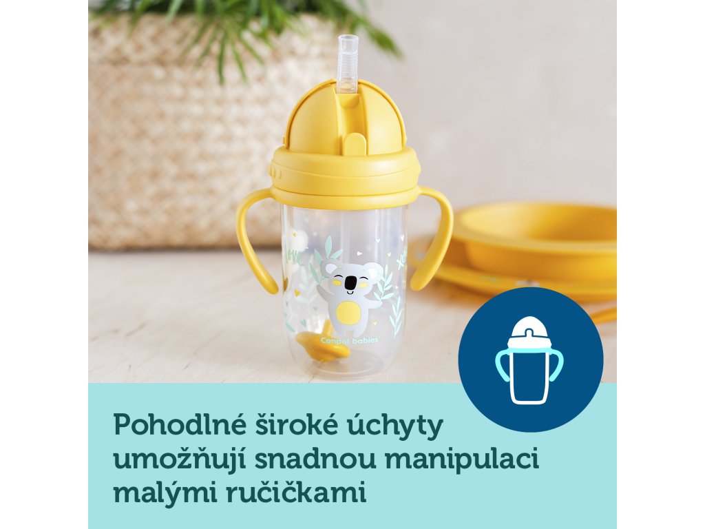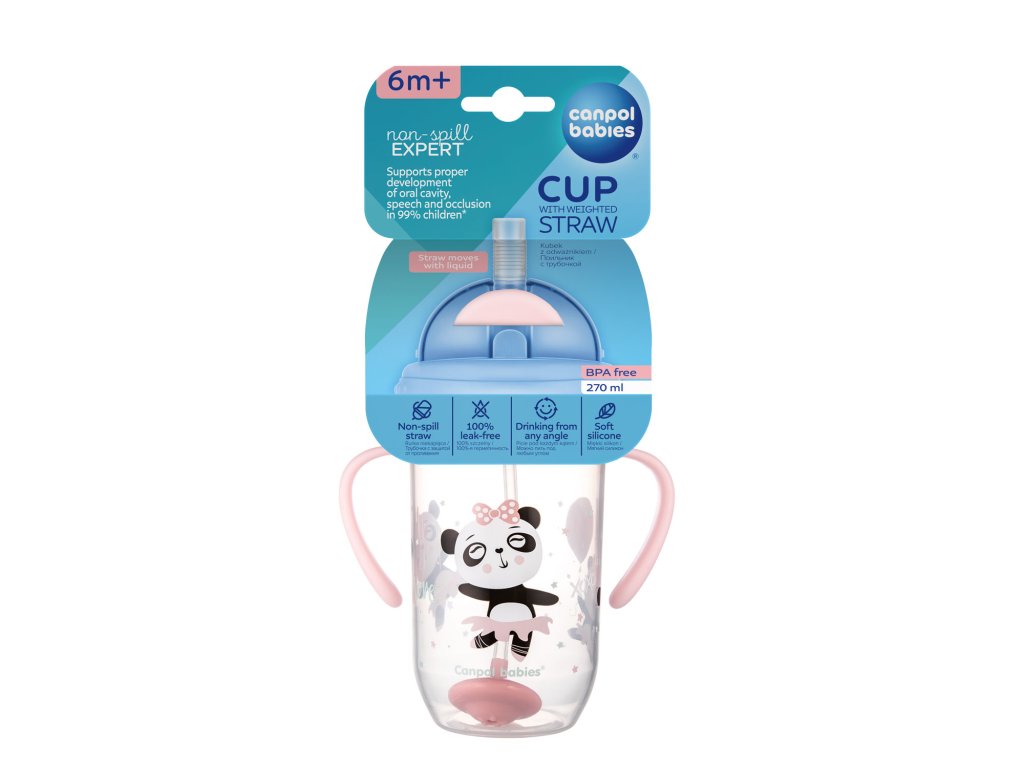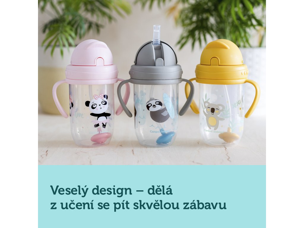 Netečúci hrnček Canpol Babies so slamkou so závažím podporuje správny vývoj ústnej dutiny, reči a chrupu u 99% detí. Je to perfektná voľba pre deti, ktoré začínajú svoje dobrodružstvo učenia sa, ako piť samostatne. Vhodné pre deti od 6 mesiacov! Jedinečná silikónová slamka so závažím sa ohýba, vďaka čomu môže dieťa piť do poslednej kvapky bez ohľadu na to, z akého uhla pije. Špeciálna membrána v slamke prepúšťa tekutinu do slamky len vtedy, keď dieťa pije, čím zabraňuje rozliatiu a moderné veko umožňuje slamku jednoducho a pohodlne schovať a zaručuje 100 % vodotesnosť bez pretečenia!