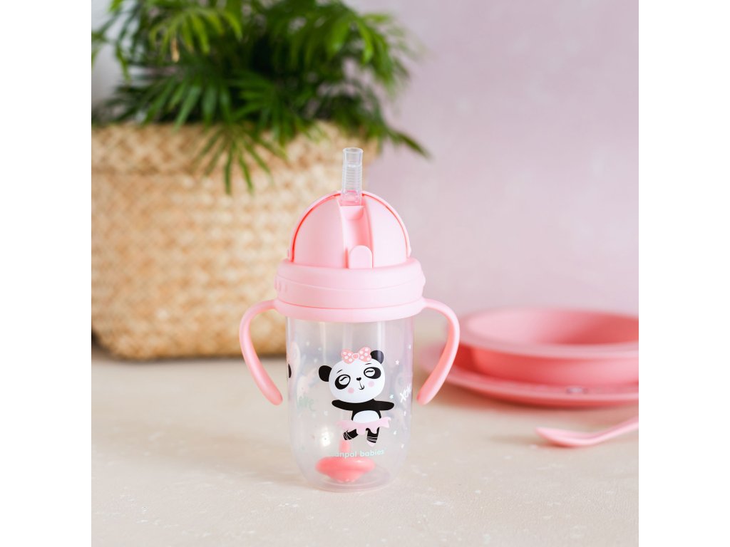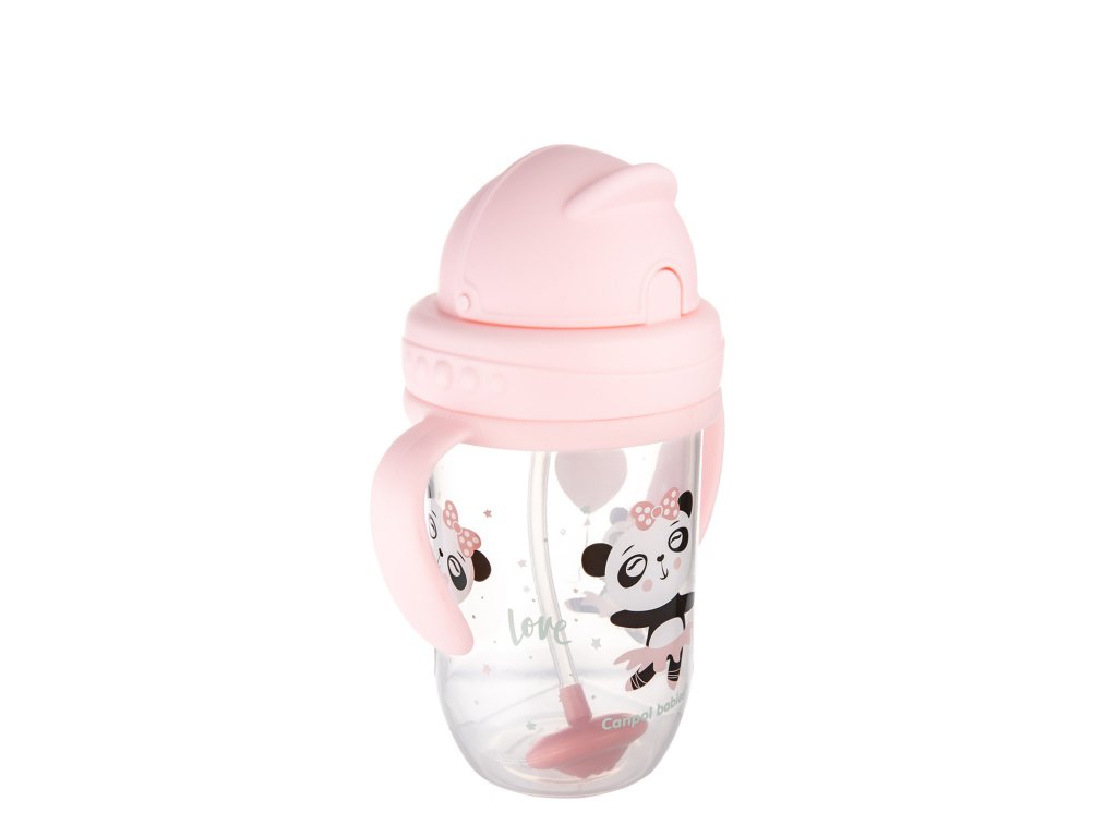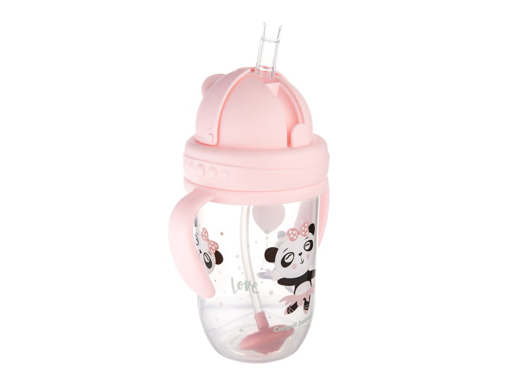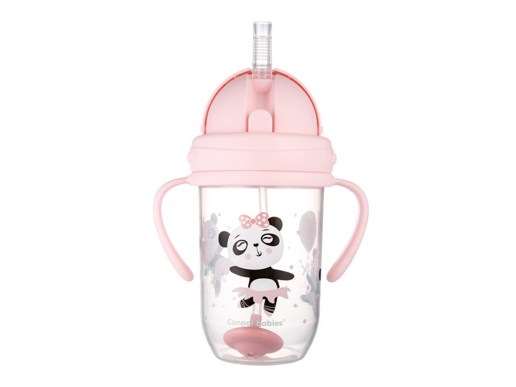 CANPOL BABIES Hrnček netečúci so slamkou so závažím 270 ml 6m+ Exotic Animals ružový
