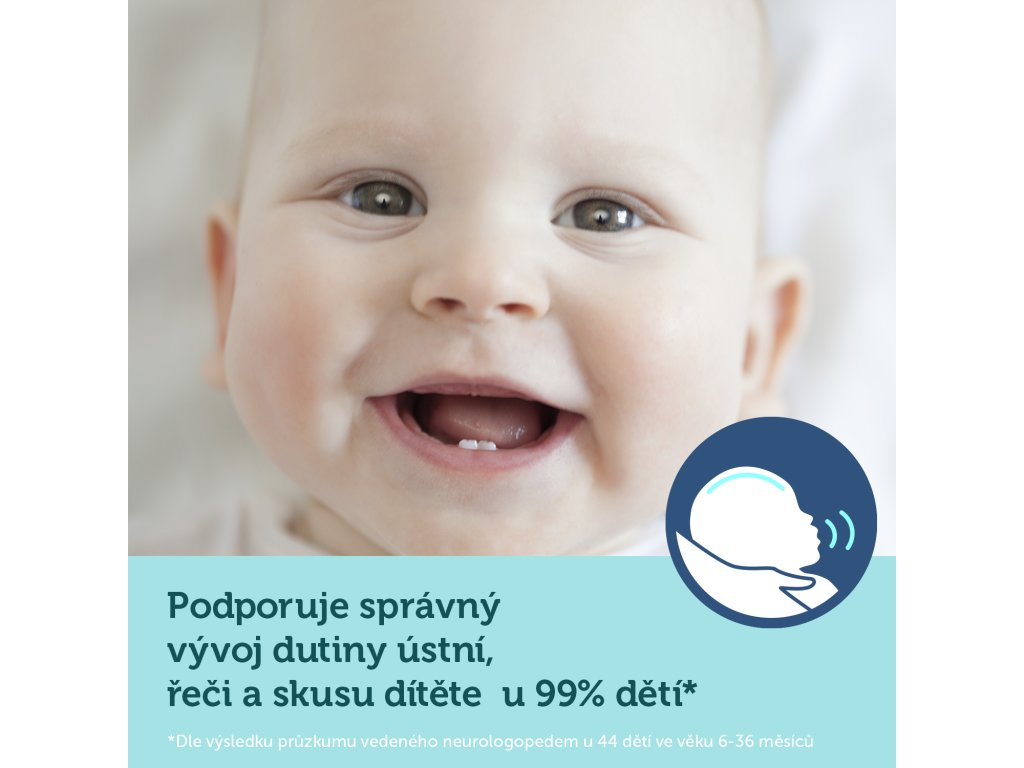 - Podporuje správny vývoj ústnej dutiny, reči a chrupu u 99% detí