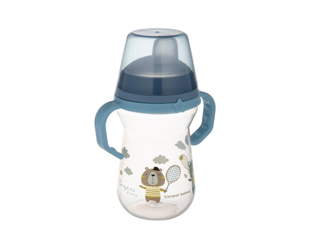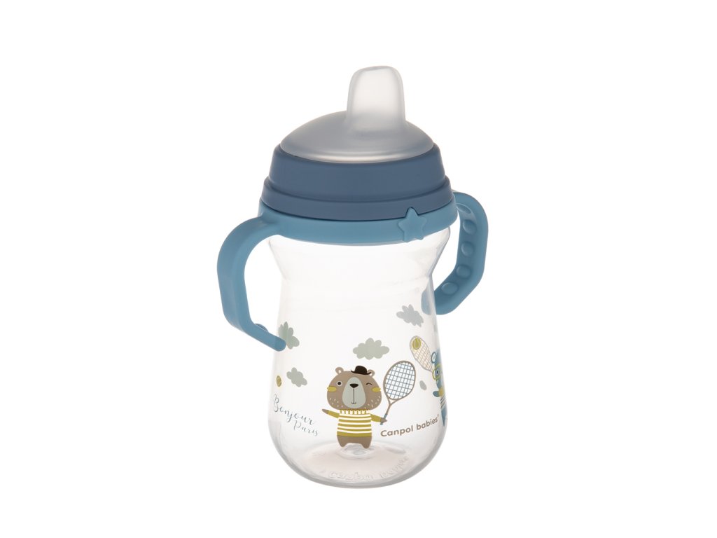 CANPOL BABIES Hrnček so silikónovým náustkom FirstCup Bonjour Paris 250ml modrý 6m+