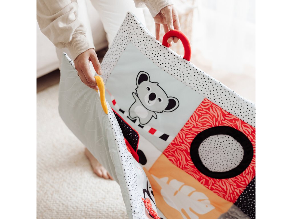 Podložka je výnimočne veľká a mäkká - 130 x 95 cm poskytne vášmu najmenšiemu pohodlie a pocit bezpečia. Vzdelávacia podložka Canpol babies sa ľahko skladá, má pohodlnú rukoväť, vďaka ktorej sa ľahko prenáša, takže môžete vytvoriť detský priestor, kdekoľvek budete potrebovať.