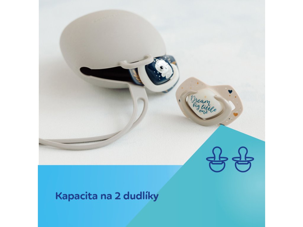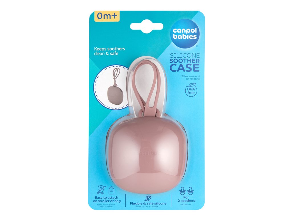Silikónové puzdro na cumlík ochráni obľúbený cumlík vášho bábätka na prechádzkach, cestovaní aj doma. Krásne a praktické silikónové puzdro na cumlík pojme dva cumlíky štandardnej veľkosti, ktoré budú vždy čisté a pripravené na použitie. Puzdro má kompaktný tvar a pohodlnú praktickú rukoväť, pomocou ktorej ho možno ľahko pripevniť na kočík, postieľku alebo tašku, aby boli cumlíky vždy po ruke. Puzdro na cumlík Canpol babies je vyrobené z pružného a mäkkého silikónu, vďaka ktorému sa pohodlne používa a ľahko sa čistí. Minimalistický dizajn sa hodí do kabelky každej mamičky.