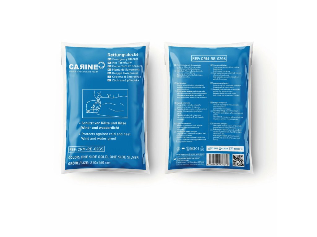 Záchranná deka zložená z dvoch 12 µm hrubých vrstiev metalizovanej PET fólie, je odolná proti roztrhnutiu, vodeodolná.