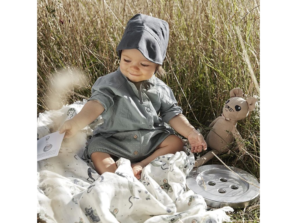 Čepeček z nové kolekce Myšák Max, si zamilujete. Krásný a pohodlný čepeček pro miminka a batolata. Čepeček má šňůrky na zavázání pod krkem a UPF 30.