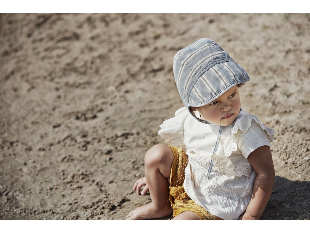 Krásný a pohodlný čepeček pro miminka a batolata. Čepeček má šňůrky na zavázání pod krkem a UPF 30.