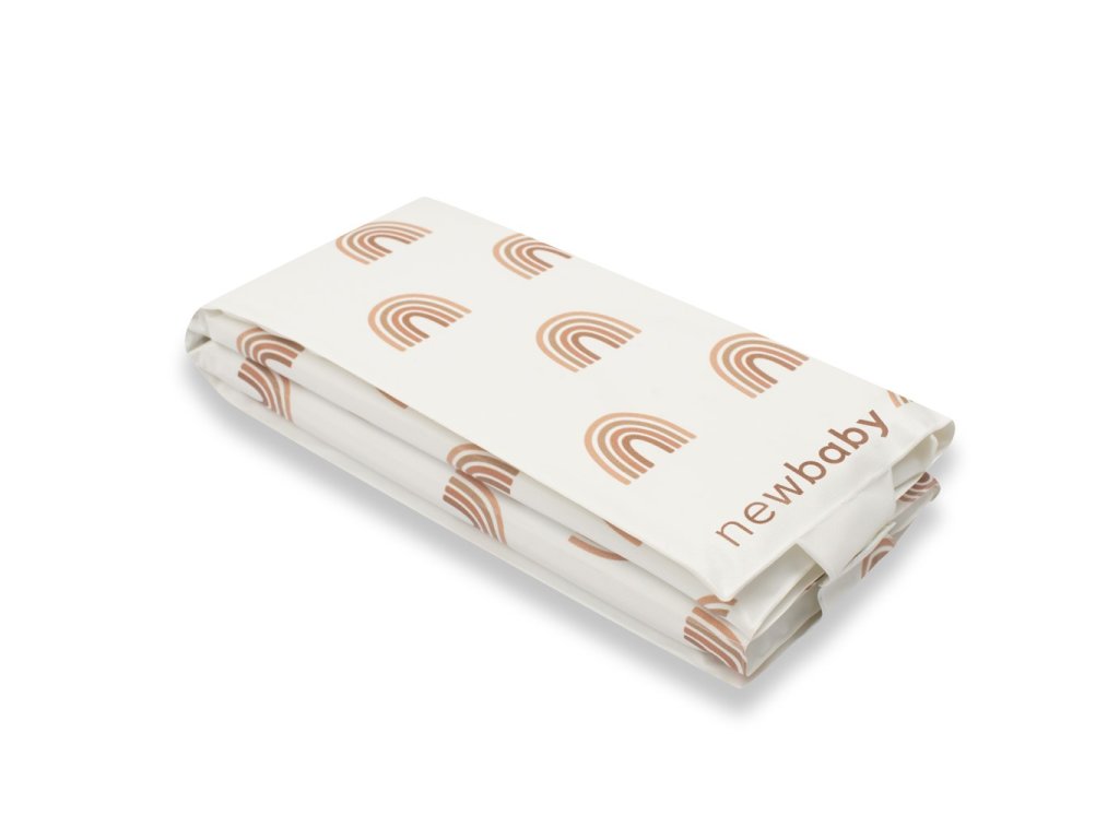Mäkká prebaľovacia cestovná podložka New Baby Rainbow z nepremokavého materiálu, vyplnená polyuretanovou penou. Podložka je skladacia, veľmi ľahká, nezaberie veľa miesta, takže ju môžete nosiť stále so sebou. Uľahčuje starostlivosť o deti počas cestovania, nakupovania či na prechádzke. Podložka je vyrobená z kvalitnej certifikovanej fólie, ktorá neobsahuje žiadne škodlivé látky a je citlivá k najjemnejšej detskej pokožke. Podložka má príjemné pastelové farby, je veľmi praktickým pomocníkom v starostlivosti o bábätko.