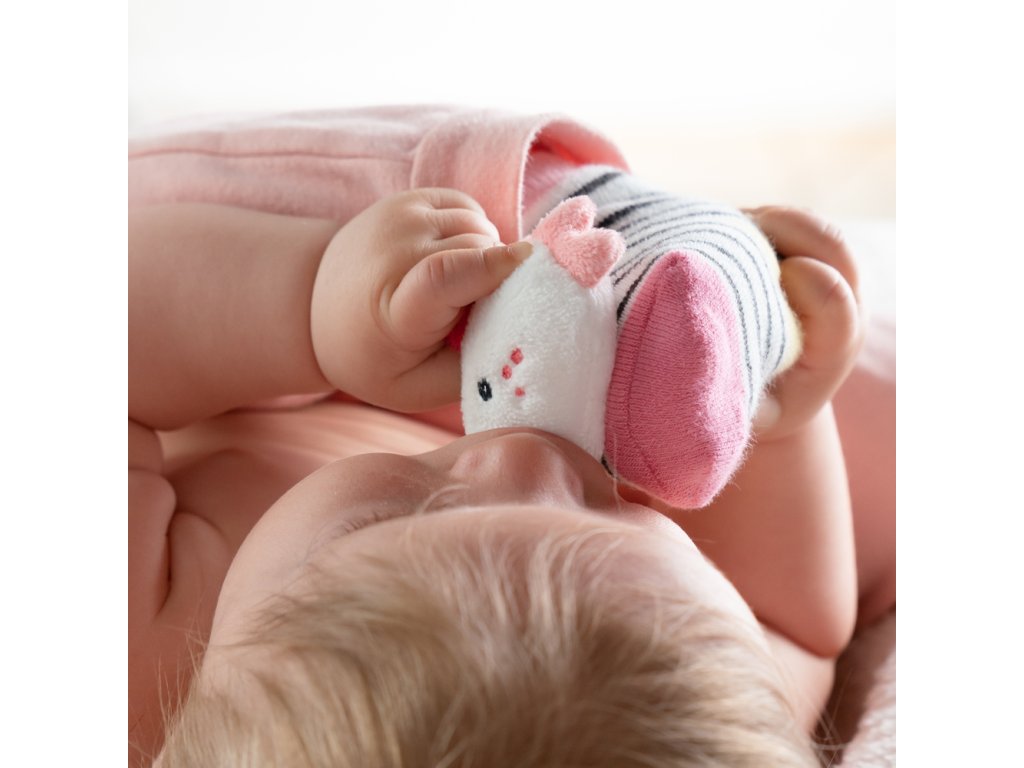 Roztomilá hlavička jednorožca pri kopaní zábavne hrká a tým povzbudzuje dieťa k pohybu nôh. Dieťatko tak hravým spôsobom trénuje svoje zmysly a motoriku.