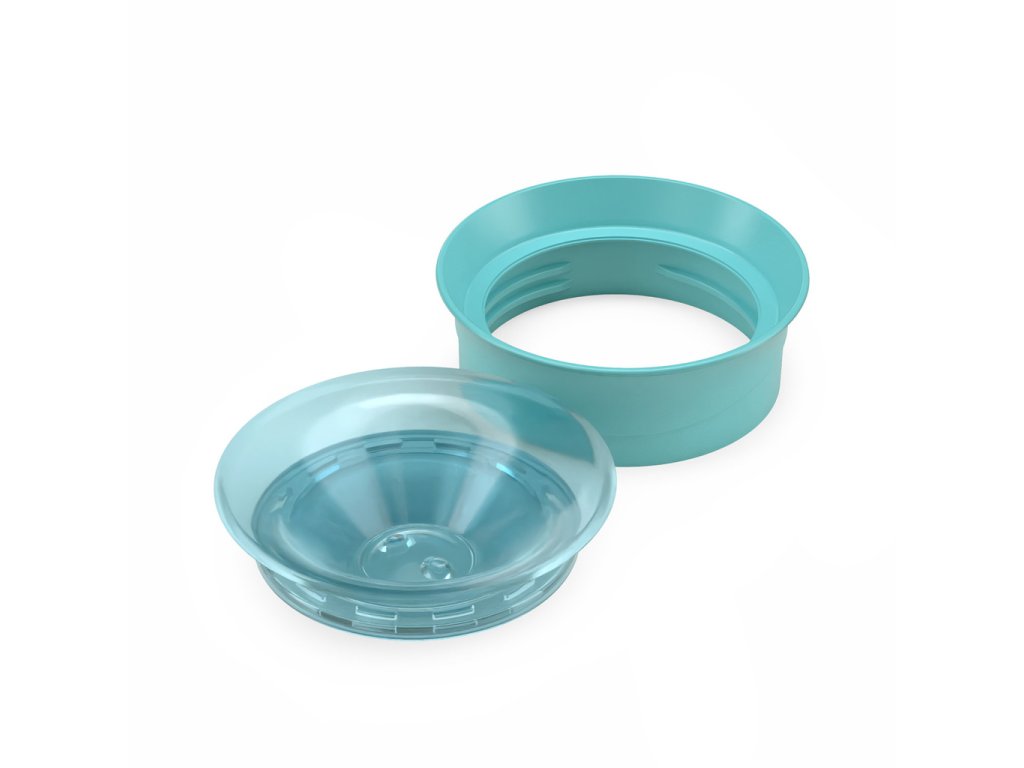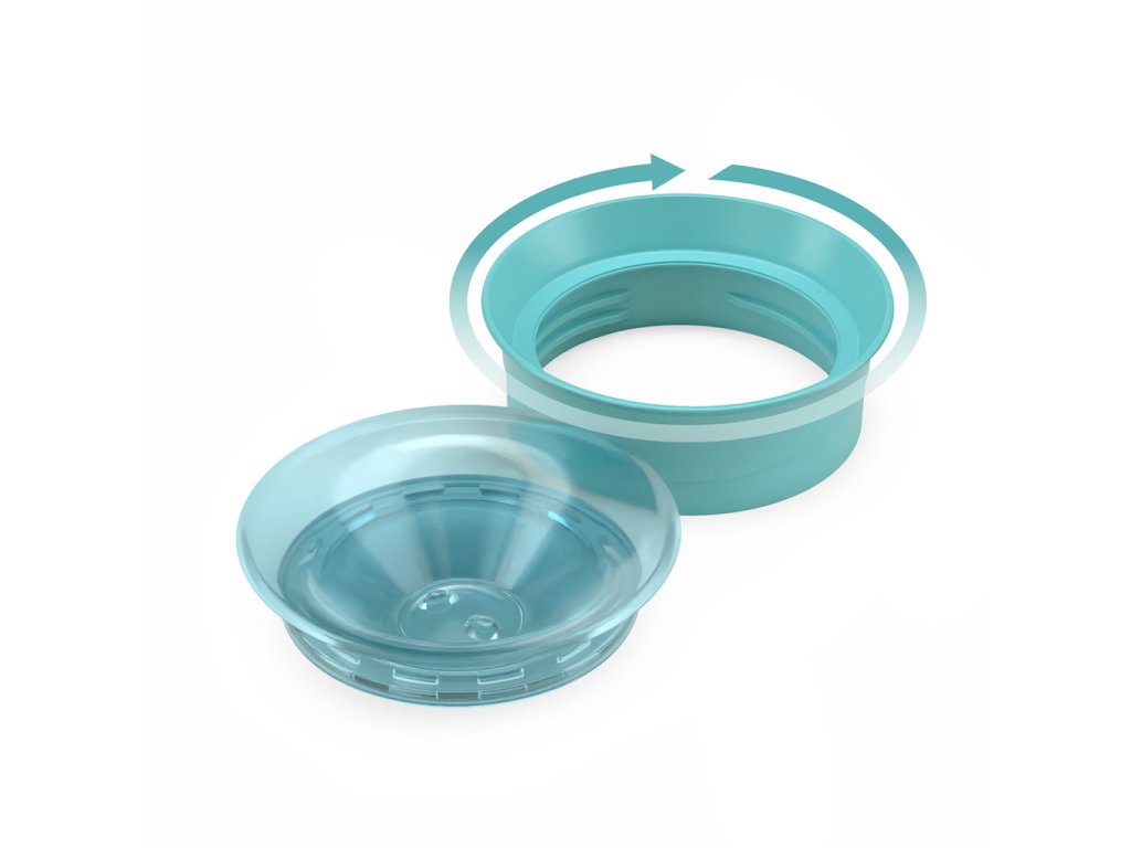 - Hrnček 360° má silikónovú membránu, ktorá sa aktivuje pri kontakte s perami dieťaťa umožňujúc mu piť priamo z okraja hrnčeka ako z pohára, ale bez obavy z rozliatia. Ideálne pre deti, ktoré sa učia piť samostatne.