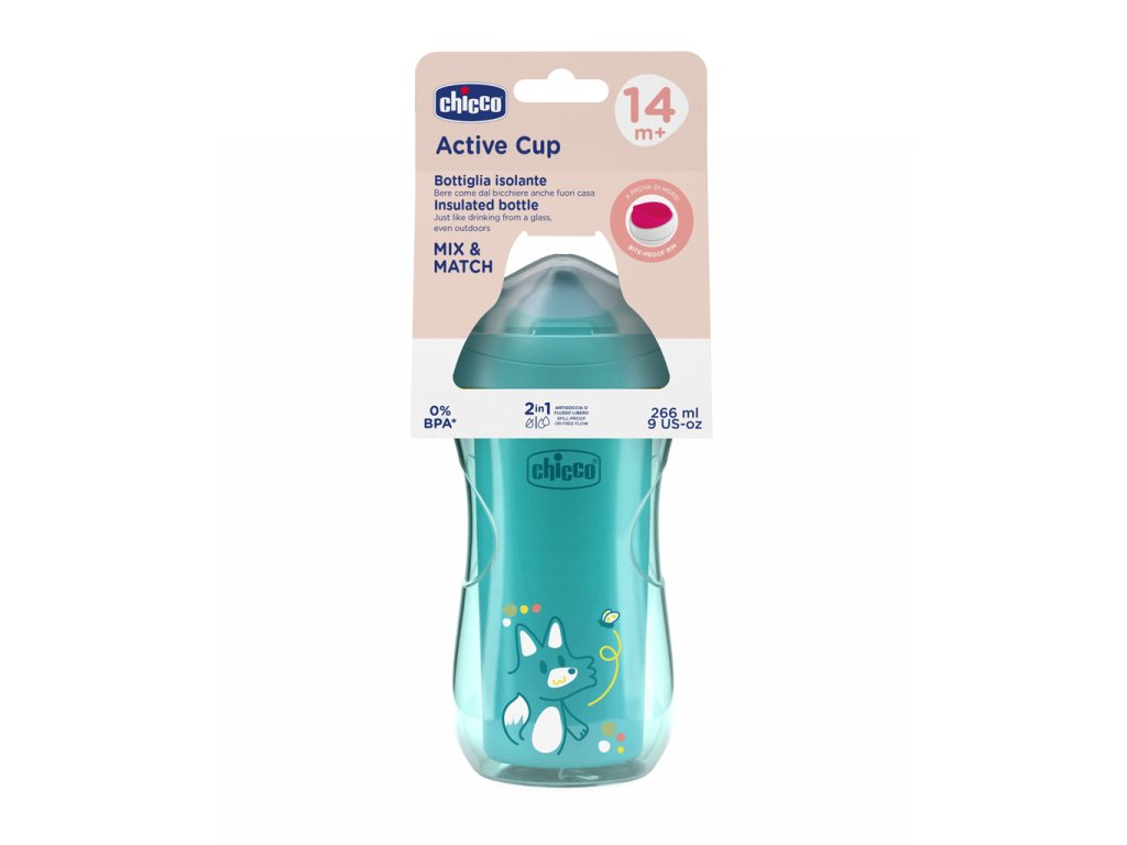 CHICCO Hrnček Active s tvrdým náustkom teal, 14m+