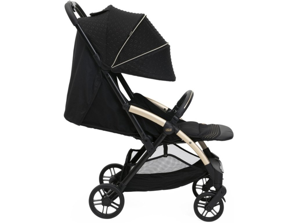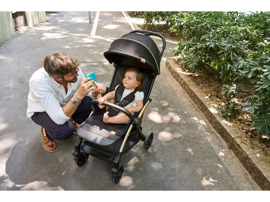 Stačí jeden dotyk a kočík sa sám zloží! Po zložení je skutočne kompaktný a stojí samostatne. Madlo sa dá tiež poskladať pre dosiahnutie väčšej kompaktnosti alebo môže byť použité ako rukoväť na prenášanie.