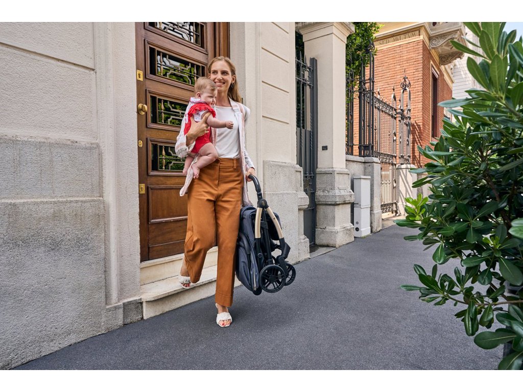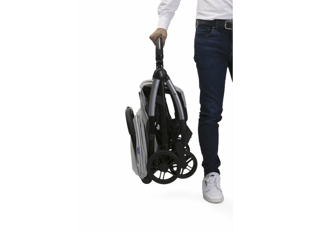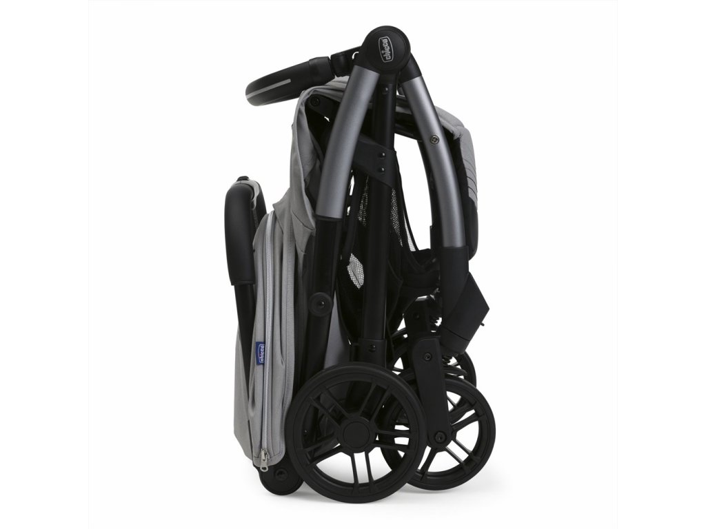 Stačí jeden dotyk a kočík sa sám zloží! Po zložení je skutočne kompaktný a stojí samostatne. Madlo sa dá tiež poskladať pre dosiahnutie väčšej kompaktnosti alebo môže byť použité ako rukoväť na prenášanie.