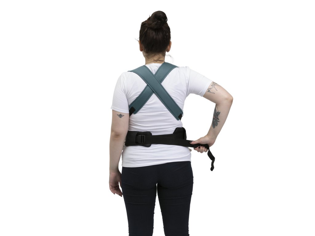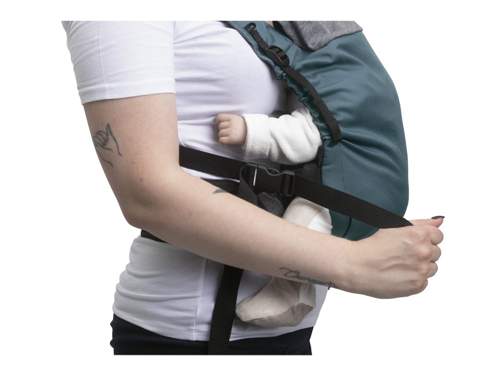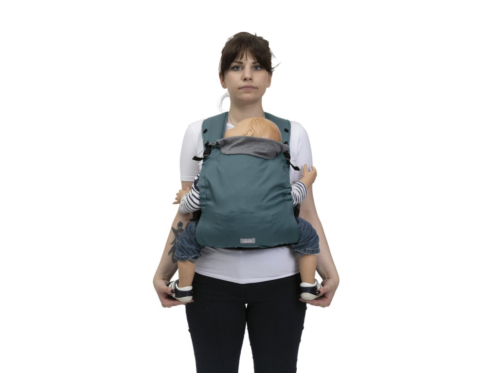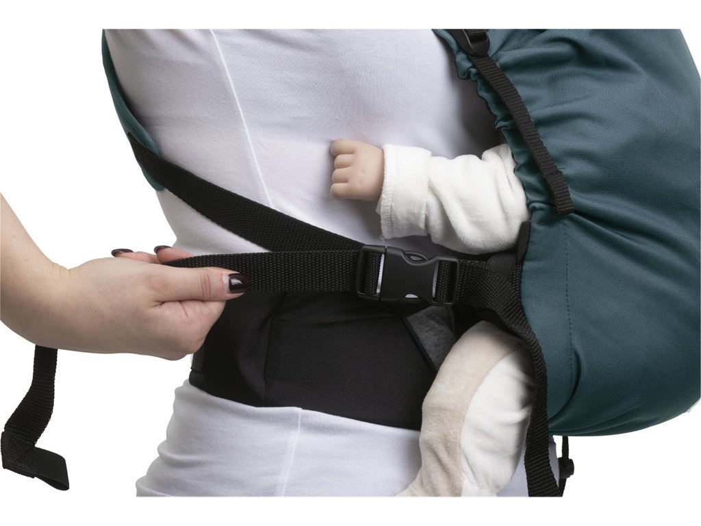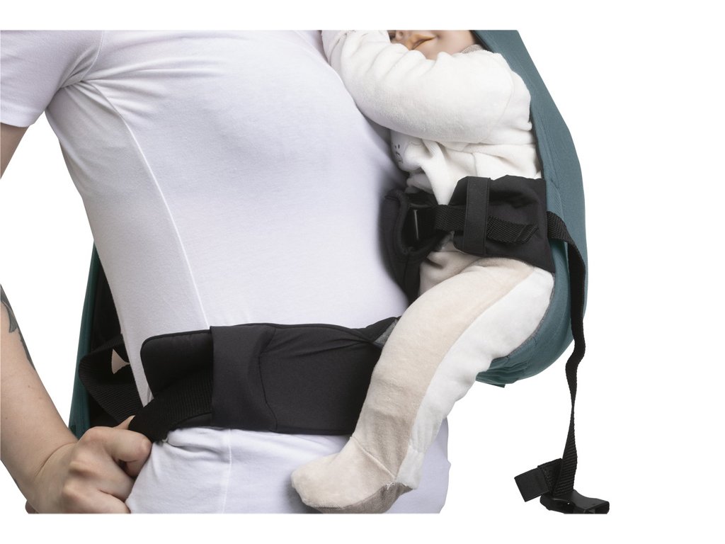 Detský nosič má polstrované ramenné popruhy, ktoré sa krížia cez chrbát nositeľa a rovnomerne rozkladajú hmotnosť dieťatka, v kombinácii s polstrovaným bedrovým pásom, ktorý správne odľahčuje váhu.