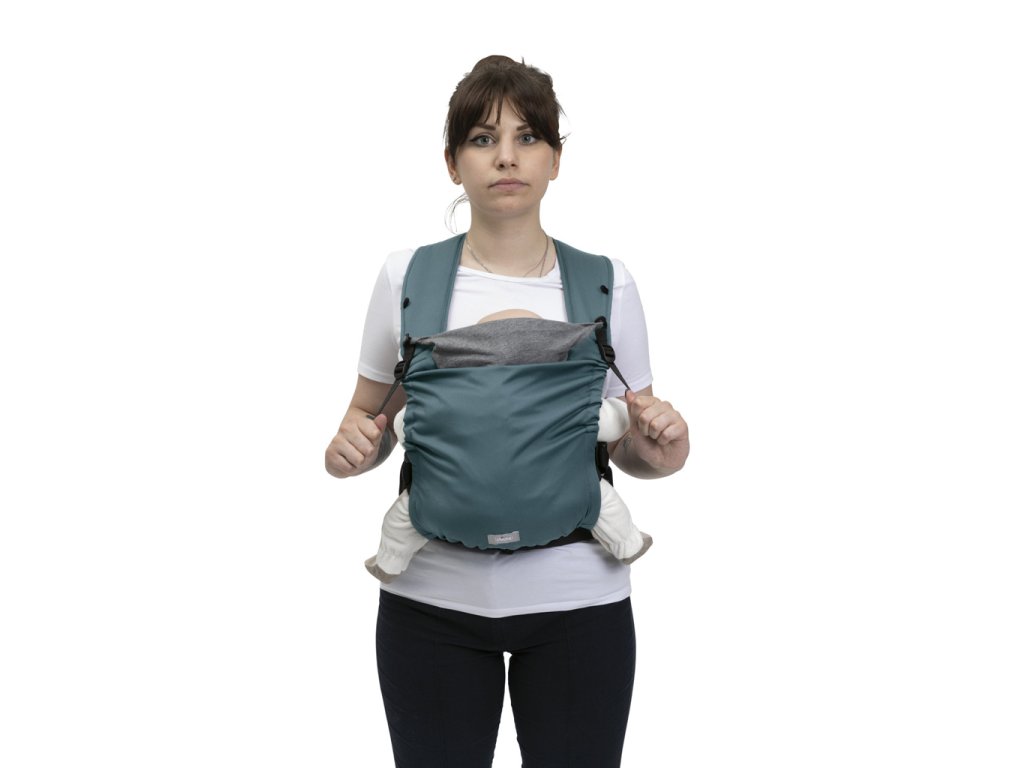 Kapucňa má dvojitú konfiguráciu: keď je spustená, poskytuje dieťaťu extra podporu krku, keď je zdvihnutá, poskytuje súkromie a ochranu pred slnkom počas spánku alebo slnečných dní.