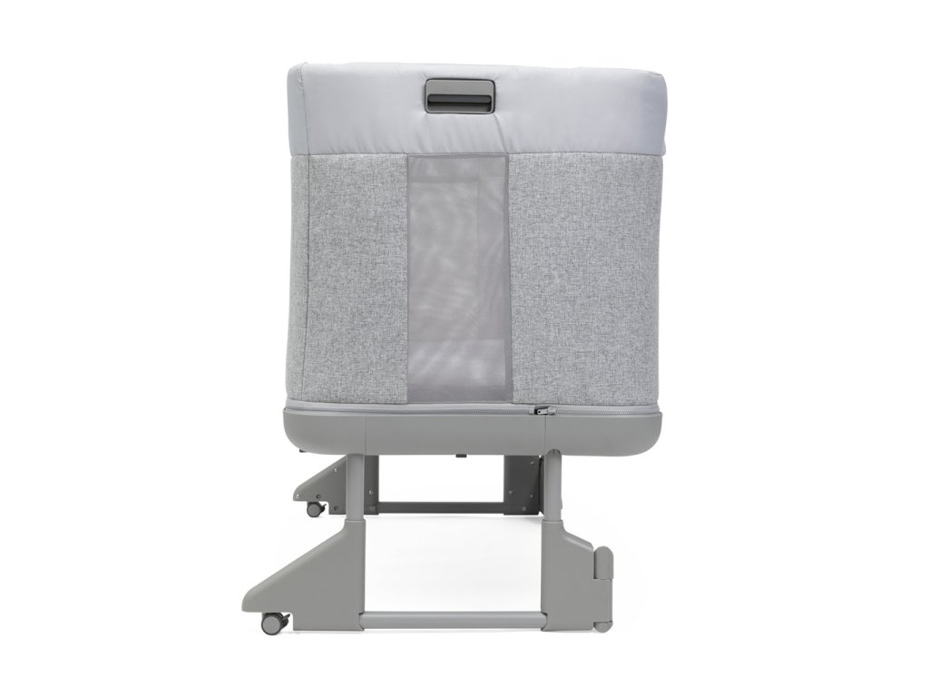 - patentovaný systém zabraňuje tomu, aby bočná strana zostala spustená, keď nie je detská postieľka úplne pripevnená k rodičovskej posteli
