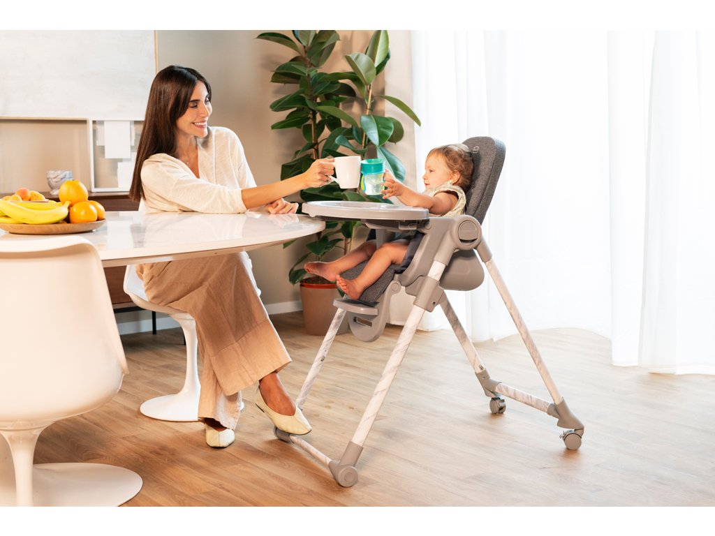 Jedálenská stolička sa dá výškovo nastaviť do 9 rôznych pozícii a prispôsobí sa tak výške, ktorú aktuálne potrebujete. Má 4 kolieska vďaka ktorým viete stoličku prakticky presúvať. Opierka chrbta sa dá nastaviť do úplného ľahu. Opierka nožičiek je rovnako nastaviteľná pre úplný komfort dieťaťa.