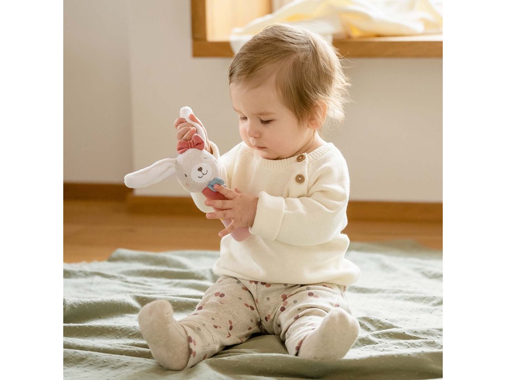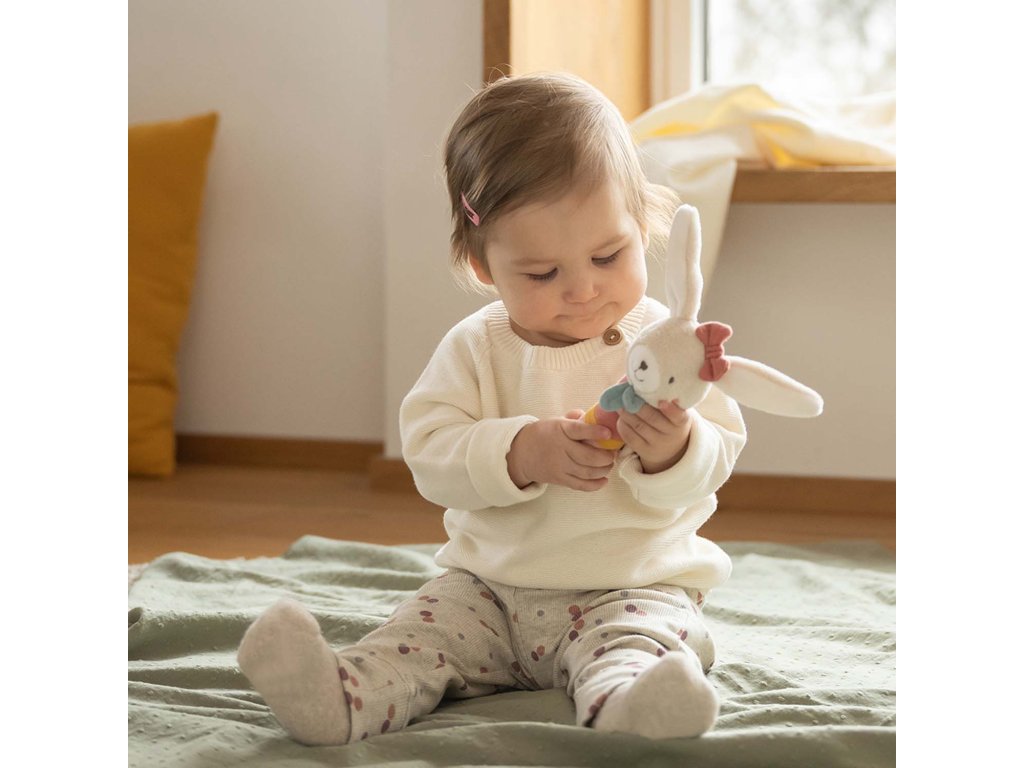 Detská hrkálka je ideálna pre uchopenie a maznanie a je vždy s vašim bábätkom, či už v postieľke, v autosedačke alebo v kočíku. Podporuje hmat a sluch a motoriku dieťaťa. Príjemné zvuky hrkálky ukradnú pozornosť dieťatka a dokážu ho rozptýliť aj v situáciách, keď ho niečo rozosmutnilo natoľko, že sa rozplakalo.