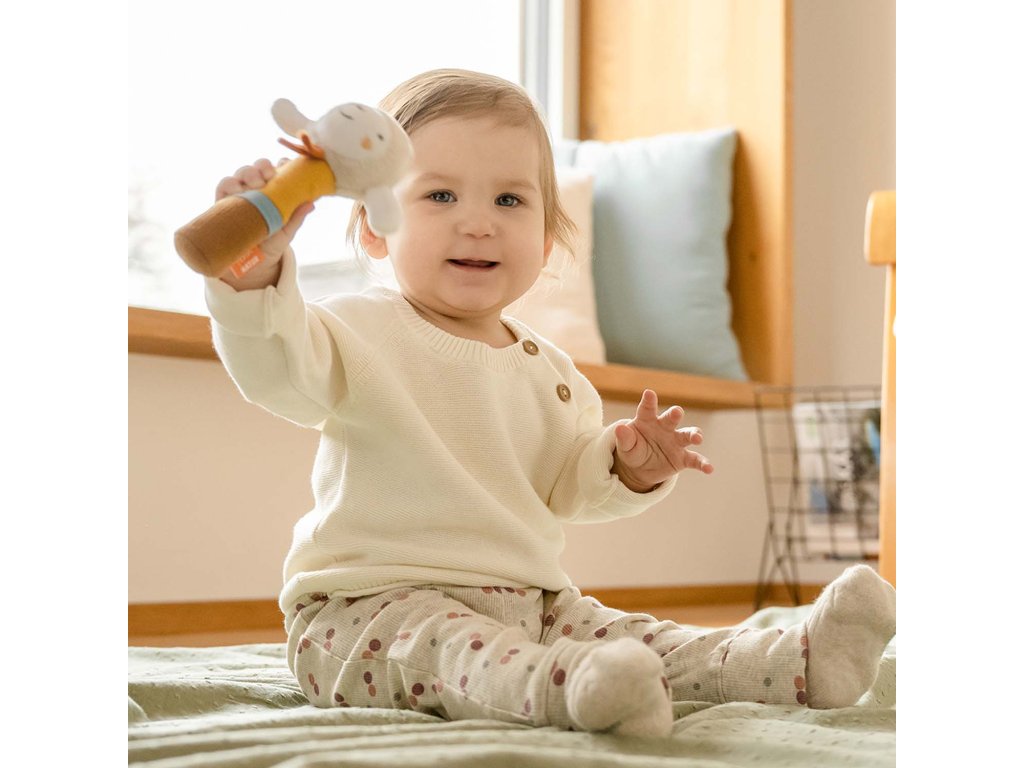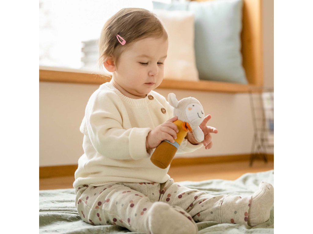 Detská hrkálka je ideálna pre uchopenie a maznanie a je vždy s vašim bábätkom, či už v postieľke, v autosedačke alebo v kočíku. Podporuje hmat a sluch a motoriku dieťaťa. Príjemné zvuky hrkálky ukradnú pozornosť dieťatka a dokážu ho rozptýliť aj v situáciách, keď ho niečo rozosmutnilo natoľko, že sa rozplakalo.