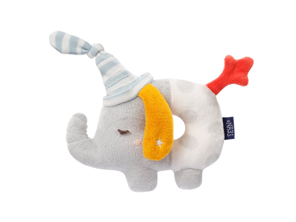 Plyšový hrkajúci sloník pre dojčatá a batoľatá od 0+ mesiacov.