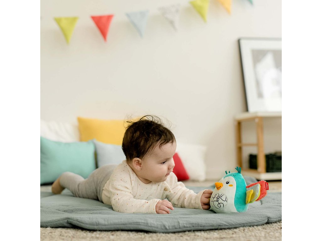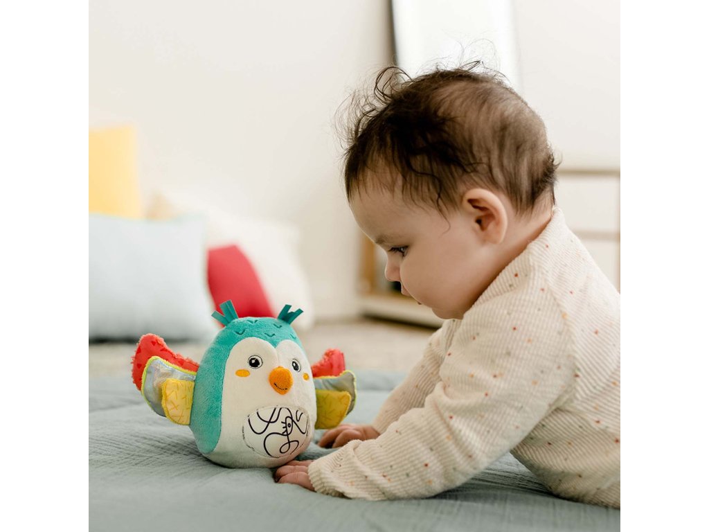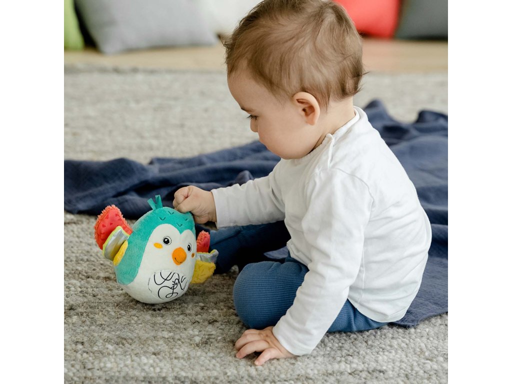 Plyšová hrkálka s množstvom aktivity prvkov ako je zvonček a praskací papier. Hračka na uchopenie hravo podporuje sluch dieťaťa, zmysel pre zrak, hmat, zdravé uchopenie a logické myslenie – ideálny ako darček pre chlapcov a dievčatá.