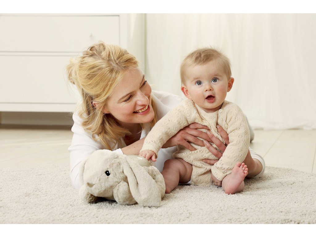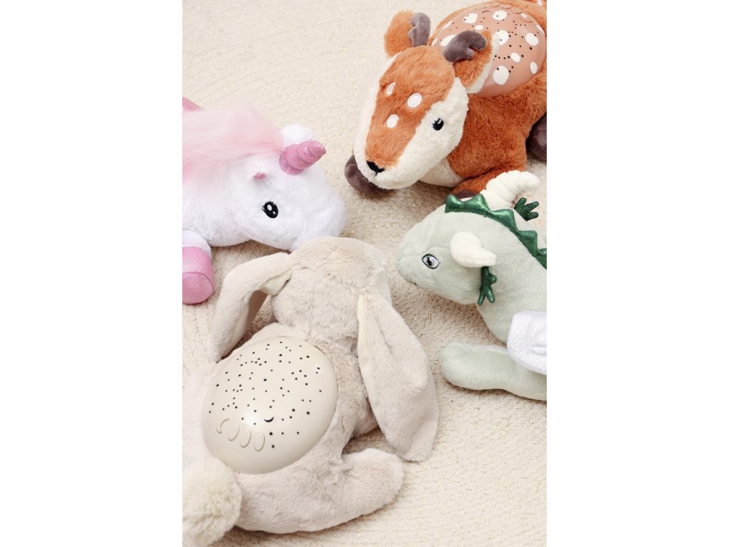 Cloud b® Dream Buddies Benny the Bunny™ je roztomilá nočná lampa v podobe plyšového zajaca, ktorá zmierňuje strach detí z tmy pomocou premietania hviezdnej oblohy na strop a steny detskej izby. Pomáha deťom upadnúť do sladkého a hlbokého spánku prostredníctvom pomalej zmeny farieb, ktorá deti zhypnotizuje a upokojí.