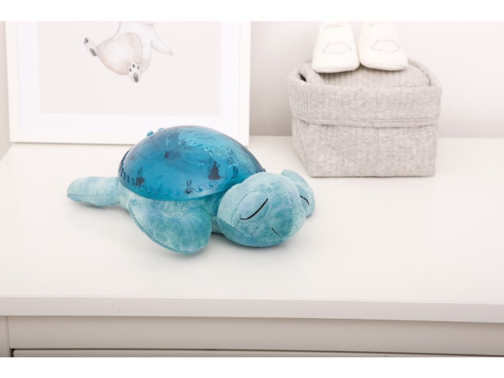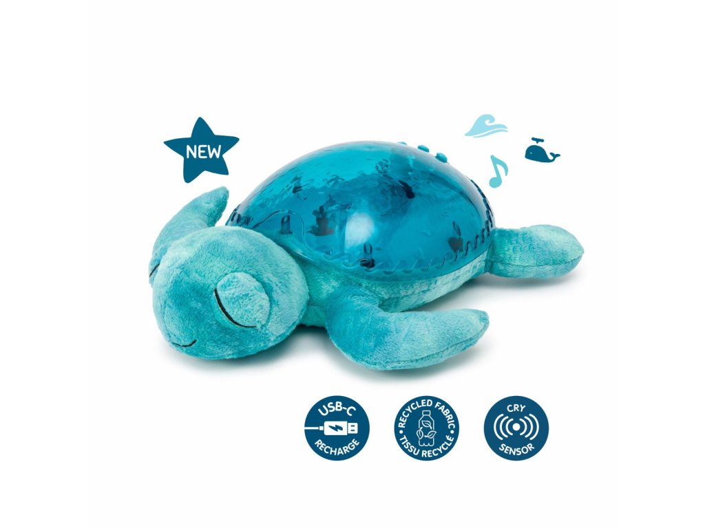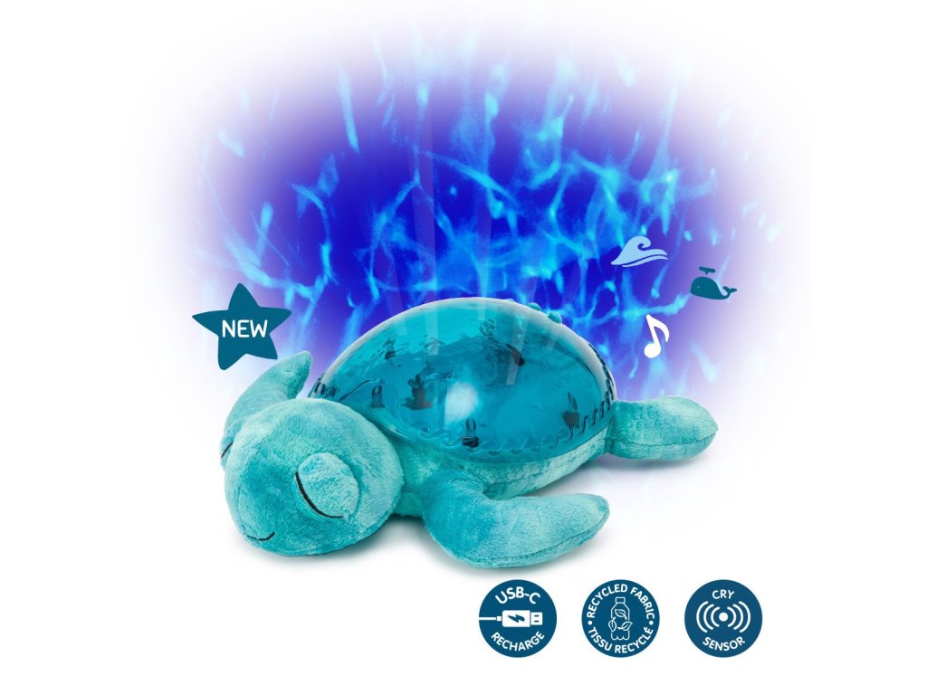 Cloud b® Tranquil Turtle™ je nová ekologická verzia ikonického nočného svetielka v podobe korytnačky, ktorá pomáha deťom upokojiť sa a zaspávať. Táto rozkošná korytnačka žiari jemným svetlom a premieta pohybujúce sa vlny oceánu na strop a steny miestnosti. Nová verzia je vyrobená z recyklovaných materiálov a je vyrobená tak, aby minimalizovala svoju uhlíkovú stopu.