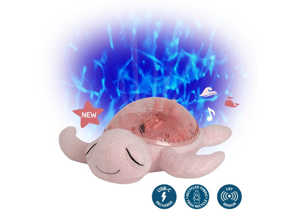 Cloud b® Tranquil Turtle™ je nová ekologická verzia ikonického nočného svetielka v podobe korytnačky, ktorá pomáha deťom upokojiť sa a zaspávať. Táto rozkošná korytnačka žiari jemným svetlom a premieta pohybujúce sa vlny oceánu na strop a steny miestnosti. Nová verzia je vyrobená z recyklovaných materiálov a je vyrobená tak, aby minimalizovala svoju uhlíkovú stopu.
