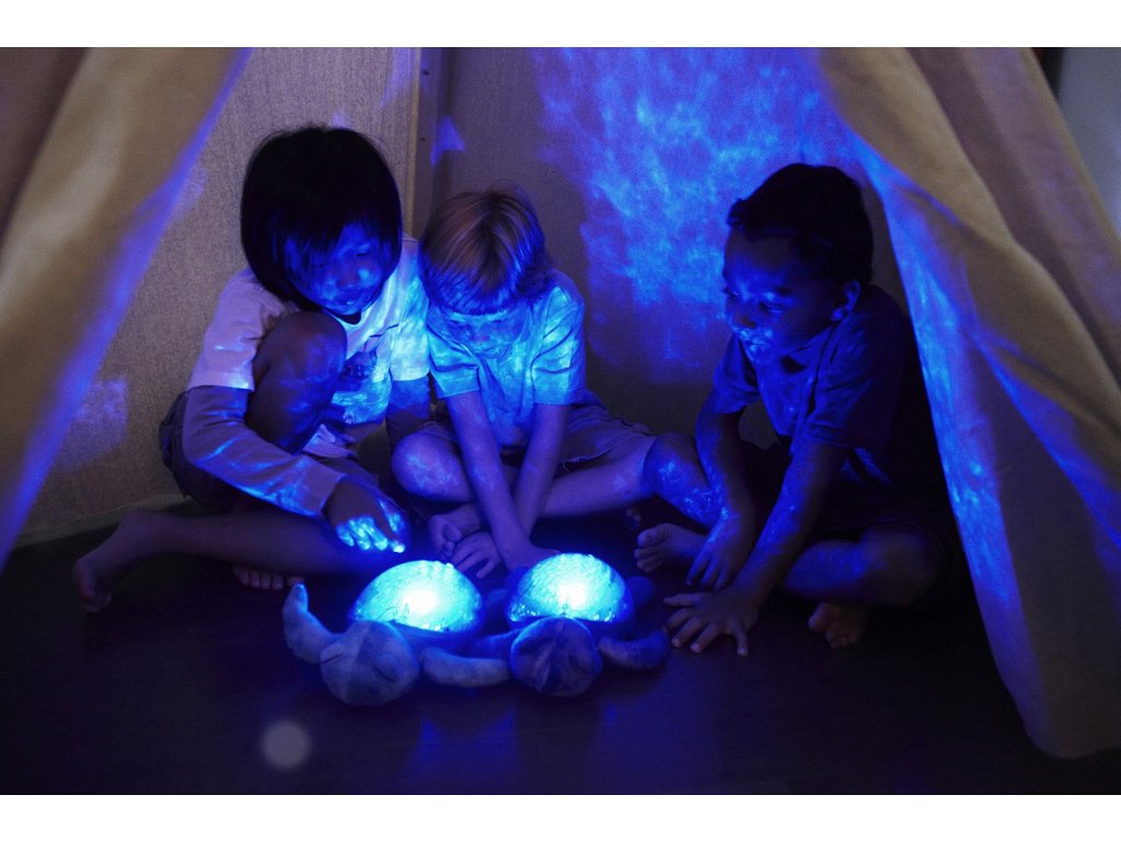 Stačí stlačiť tlačidlo na pancieri korytnačky, aby ste zapli svetelný projektor a užili si jeho žiaru celých 23 minút.