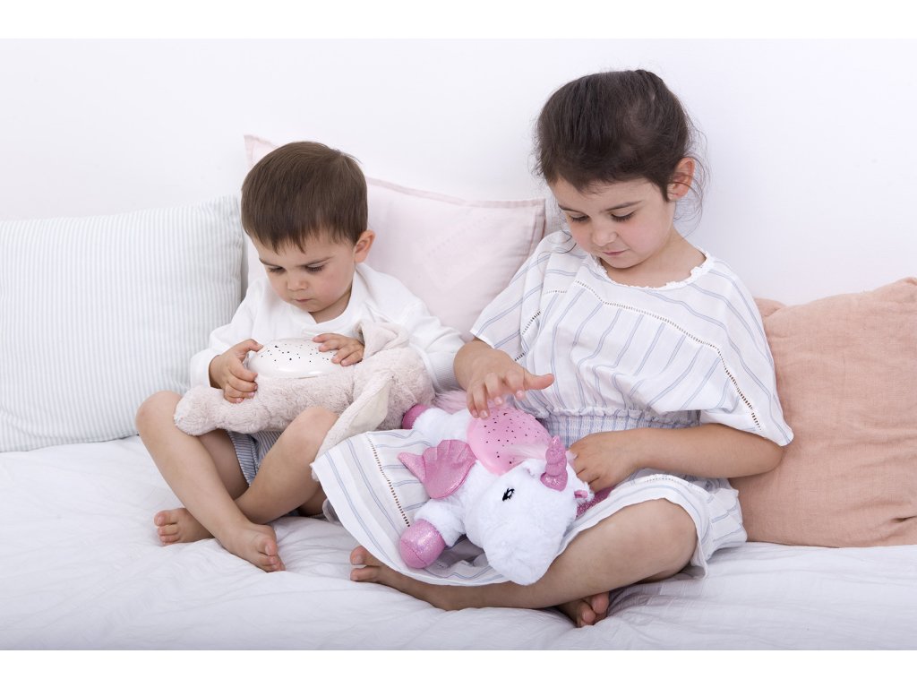 Roztomilá lampa s motívom zajačika pomáha deťom prekonať strach z tmy tým najsladším možným spôsobom! Twilight Buddies ™ sú mimoriadne prítulní priatelia, ktorí zmenia strašidelnú a temnú miestnosť na oblohu hviezdami nabitú skutočnými súhvezdiami na strope a stenách spálne. V upokojujúcej hviezdnej projekcii je ukrytý mesiac a tri súhvezdia!
