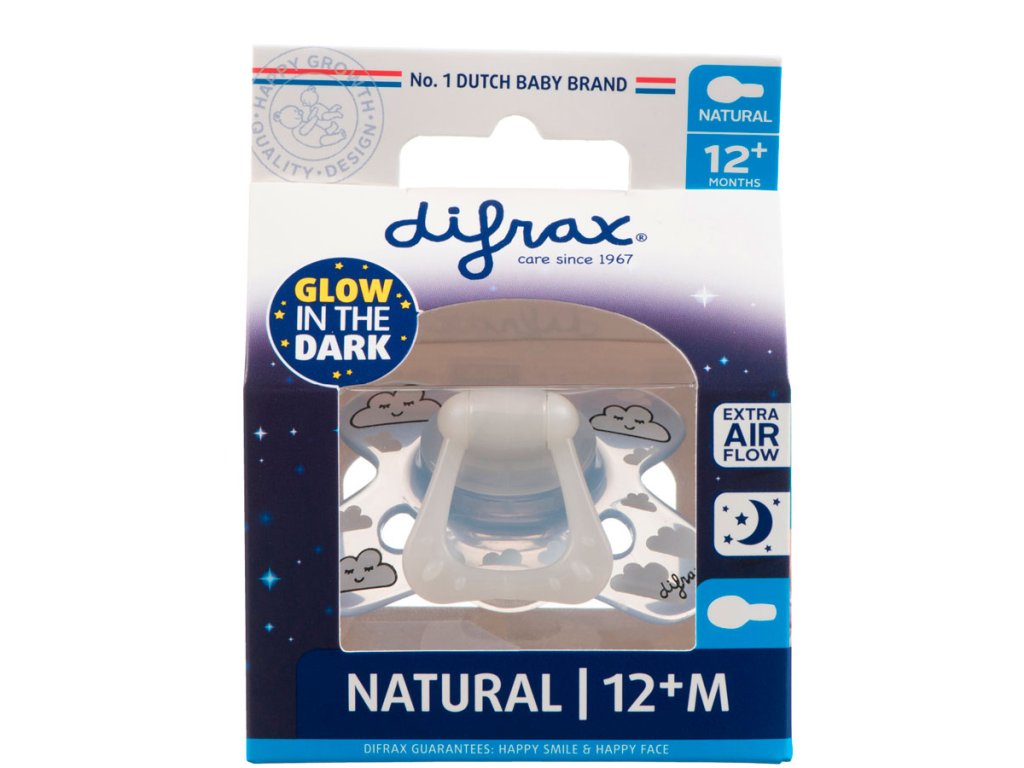Cumlík Difrax upokojuje dieťa i matku. Príchod dieťaťa prevráti váš svet hore nohami. Nás cumlík vám ponúka pohodlie a dieťaťu pokoj, tým, že sa Vaše dieťa pri saní cíti bezpečne, aj keď pri ňom práve nie ste. Prerezávajúce sa zúbky vytvárajú tlak v ďasnách a prvou pomocou býva cumlík. Naviac, cumlík je šetrnejší k zubom než palec, je hygienickejší a bezpečnejší. A odvykanie od cumlíku je jednoduchšie, ako odvykanie od cucania palca. Anatomicky tvarovaná savička je svojou tvrdosťou kompromisom medzi mäkšou u cumlíka 6+ a tvrdšou u 18+. Pre dieťatko je tak cumlík 12+ začiatkom postupného odvykania si od cmúľania.