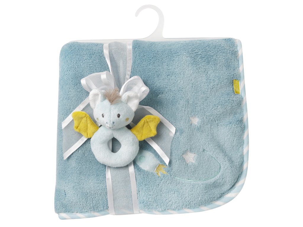 Obdĺžniková plyšová deka je hračkou a praktickou pomôckou zároveň. Deka môže slúžiť na maznanie aj ako ľahká prikrývka. Aplikácia malého plyšového Netopier je hračkou na rozptýlenie dieťaťa, ak deku použijete napríklad pri ceste autom alebo pri vode.