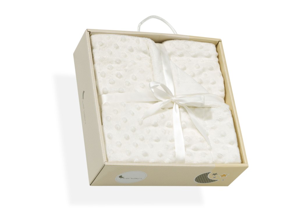 Nádherný darček balený v darčekovej krabičke, vhodný pre narodené bábätká i väčšie deti do troch rokov, ktoré si veľkosť deky užijú. Deka je jemná k detskej pokožke.