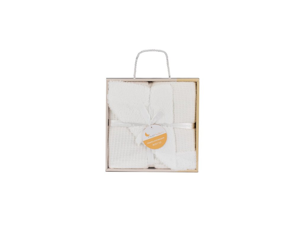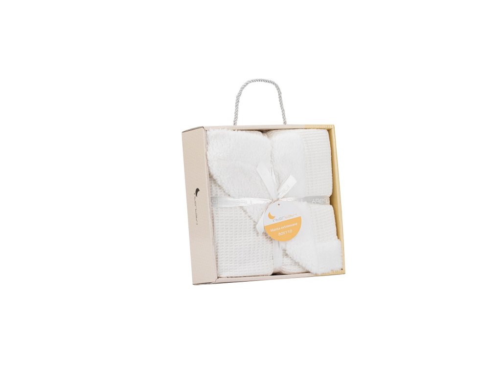 Nádherný darček balený v darčekovej krabičke, vhodný pre narodené bábätká i väčšie deti do troch rokov, ktoré si veľkosť deky užijú. Deka je jemná k detskej pokožke.
