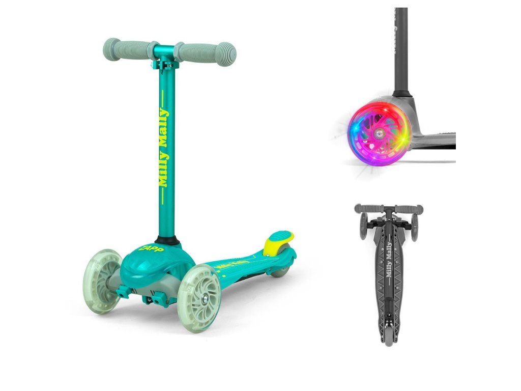 Aby sme vyhoveli potrebám našich malých pretekárov, vytvorili sme kolobežku ZAPP. Je ideálnym riešením pre aktívne deti, ktoré majú rady pohyb. Zapp je vyrobený z kvalitných materiálov, je ideálny na prechádzky alebo vyvádzanie okolo domu. Kovová konštrukcia zaručuje odolnosť výrobku. Kolobežka má navyše brzdu a blatník na zadnom koliesku. Riadenie a zatáčanie pracuje na princípe zmeny rovnováhy tela. Veľkou výhodou kolobežky sú 3 kolesá, ktoré poskytnú stabilitu a bezpečnosť. Deti potešia tiež, svietiace predné kolesá počas jazdy.