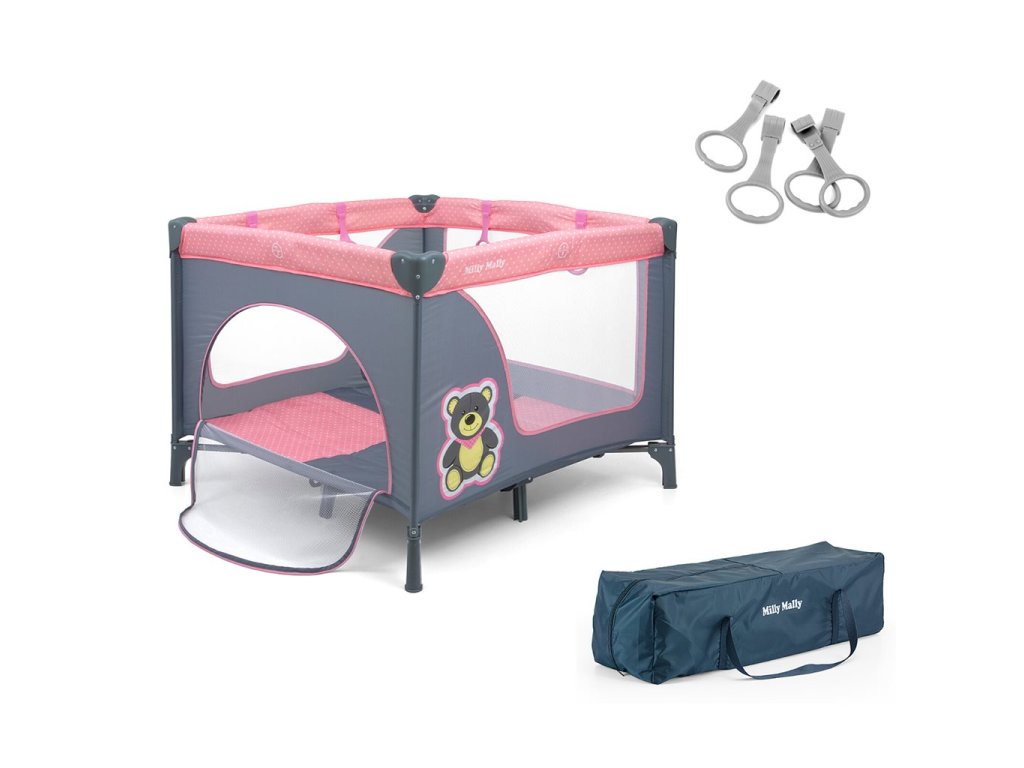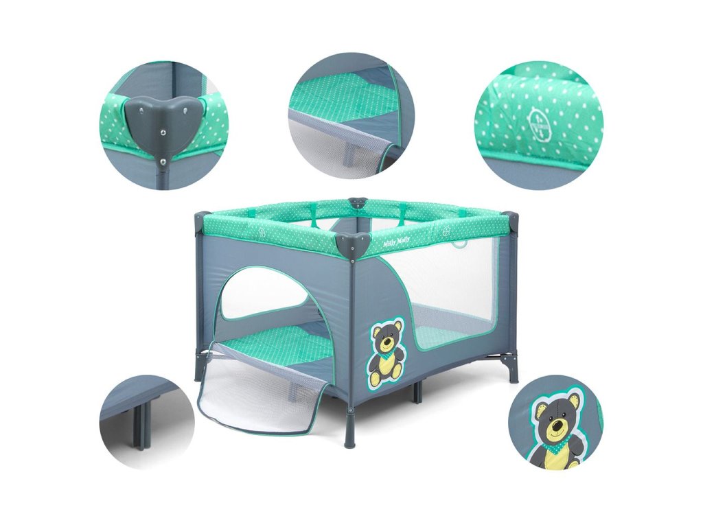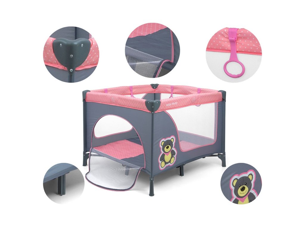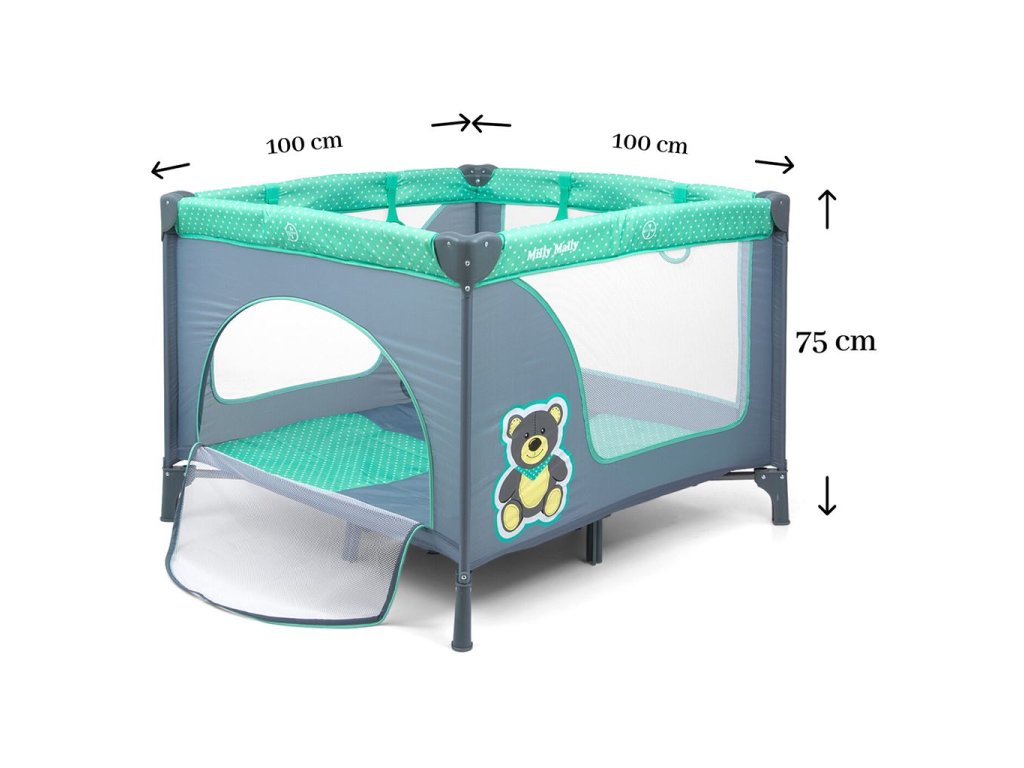 Detská skladacia ohrádka Milly Mally Fun. Jednoduché a rýchle skladanie ako u cestovnej postieľky. Priehľadná sieťka na bočných stranách. Jeden bok má otváracie dvierka na zips. Ohrádka má mäkkú farebnú matrac. Súčasťou je tiež taška na prenášanie. Rozmery: cca 100x100 cm, po zložení: cca 22x21x95 cm, váha 10 kg.