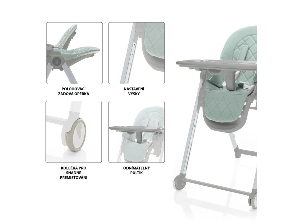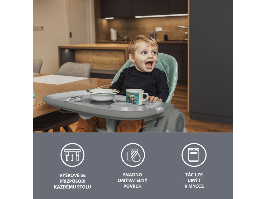 potrebný, možno ho ľahko odňať a zavesiť na zadnú časť stoličky. Jedálenský
